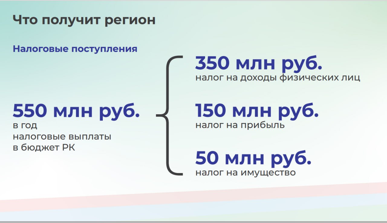 — Крупные инвестиции и значительный ежегодный прирост налогов.