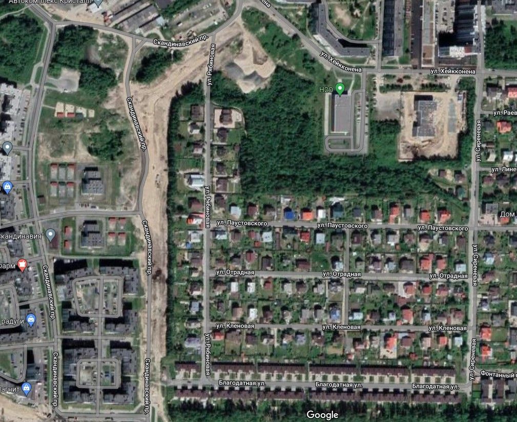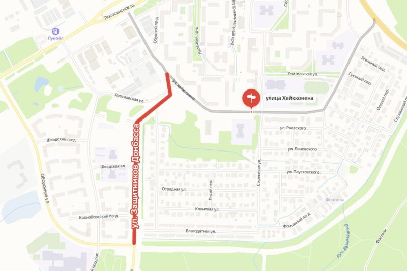 Отметим, что новая улица появилась не на пустом месте. Ранее это была часть Скандинавского проезда. Вторая – параллельная часть этого проезда – сохранила свое название, а вот эта была переименована в улицу Защитников Донбасса. На Google-картах указано прежнее название, а вот Яндекс-карты уже показывают новое.
