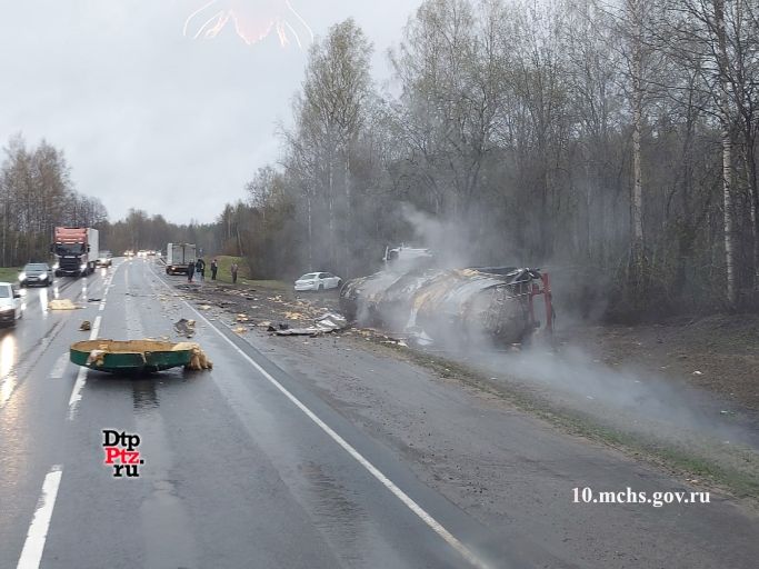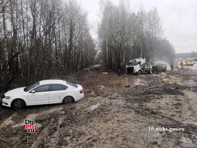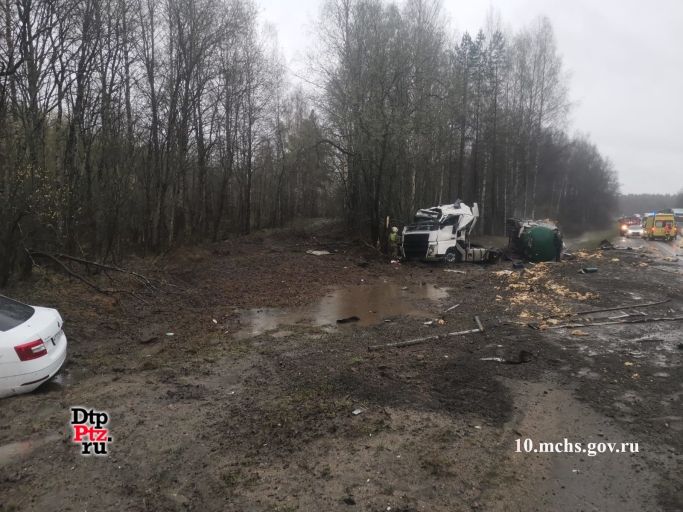 Как пишет сайт «ДТП Петрозаводска и Карелии», по одной из версий, транспортные средства двигались в попутном направлении. Из-за технической неисправности правого заднего колеса тягача, у автопоезда начался так называемый «ритмический» занос. В этот момент и произошло столкновение с совершающим маневр обгона легковым автомобилем.
