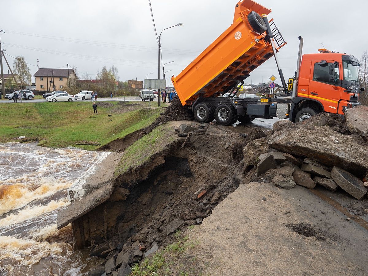Как сообщает пресс-служба правительства, федеральные дорожники оперативно устранили последствия подтопления автодороги паводковыми водами реки Вилга.