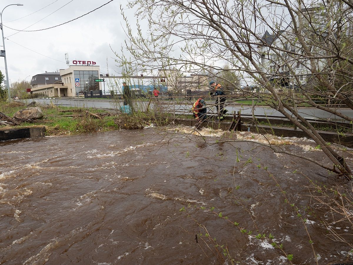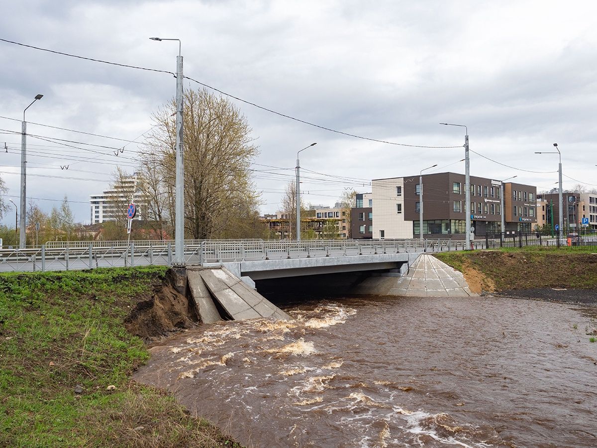 Весь день мы рассказываем о последствиях наводнения. К вечеру 14 мая ситуация нормализуется, уровень воды в Лососинке потихоньку падает. А вот в Неглинке воды по-прежнему много. Одной из жертв стихии стал недавно восстановленный мост на улице Кирова. По этому мосту проходит в том числе общественный транспорт.