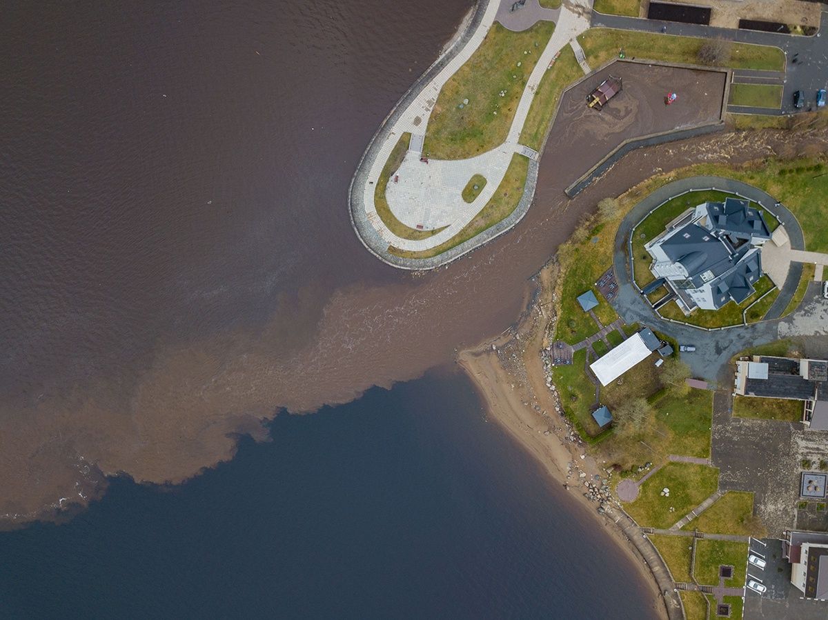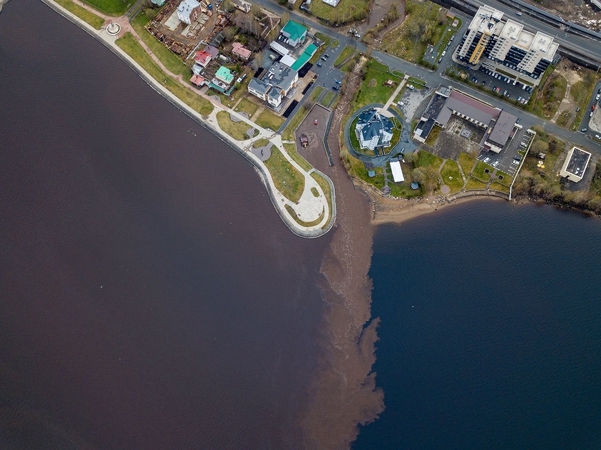 Петрозаводская губа будет не самым чистым местом после нынешних разливов городских рек Неглинки и Лососинки. Мощные потоки выносят частицы почвы, ветки, пластиковый мусор, брёвна на сотни метров в акваторию Онежского озера. Шлейф от устья Неглинки тянется больше чем на 300 метров, Лососинки – без малого на километр, — рассказал фотограф.