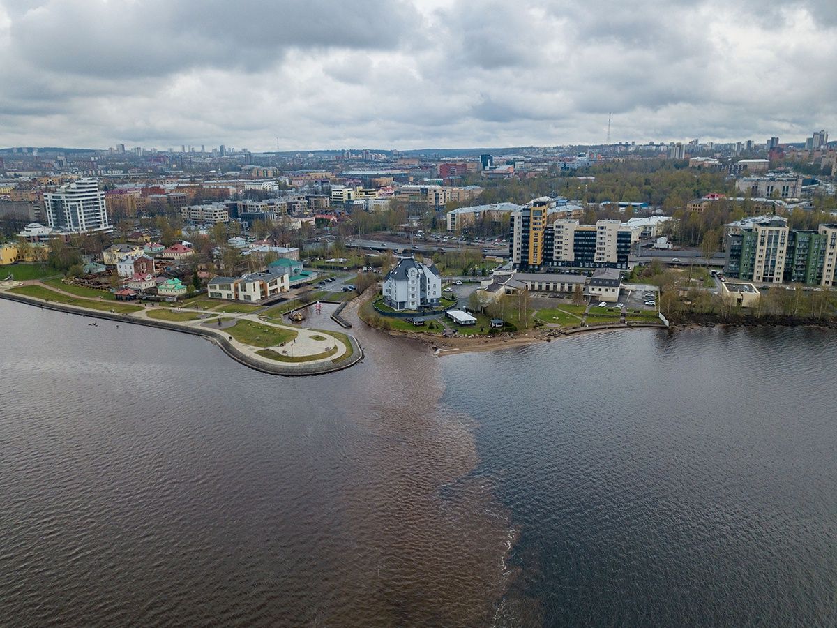 Из-за наводнения и выхода рек Лососинка и Неглинка из берегов грязь из Петрозаводска хлынула в Онежское озеро. Фото с квадрокоптера сделал наш коллега Игорь Подгорный.