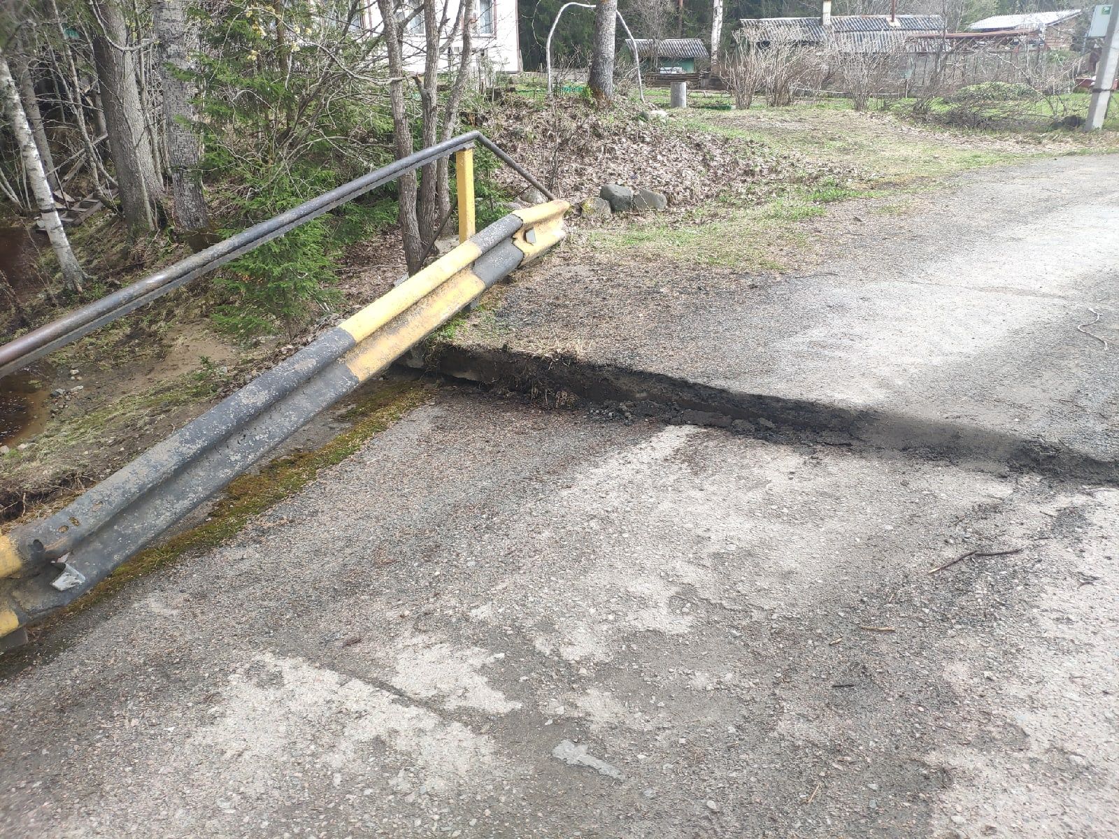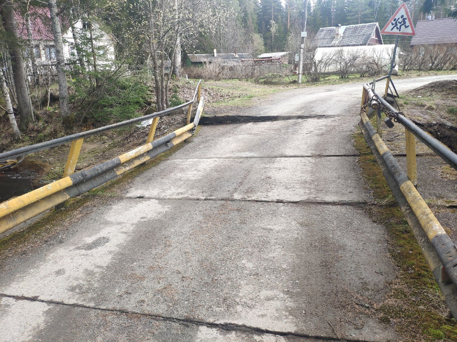 В Лососинном в Прионежском районе подмыло не только дороги. На въезде в кооператив «Связист», что в пяти километрах от разрушенной дороги рядом с кэмпингом «Ёлки на горке», частично обрушился мост через реку Илакса. Провалилась плита основания строения. Легковые машины проезжают с тревогой, а вот грузовые пока здесь не ездят во избежание окончательного обрушения.