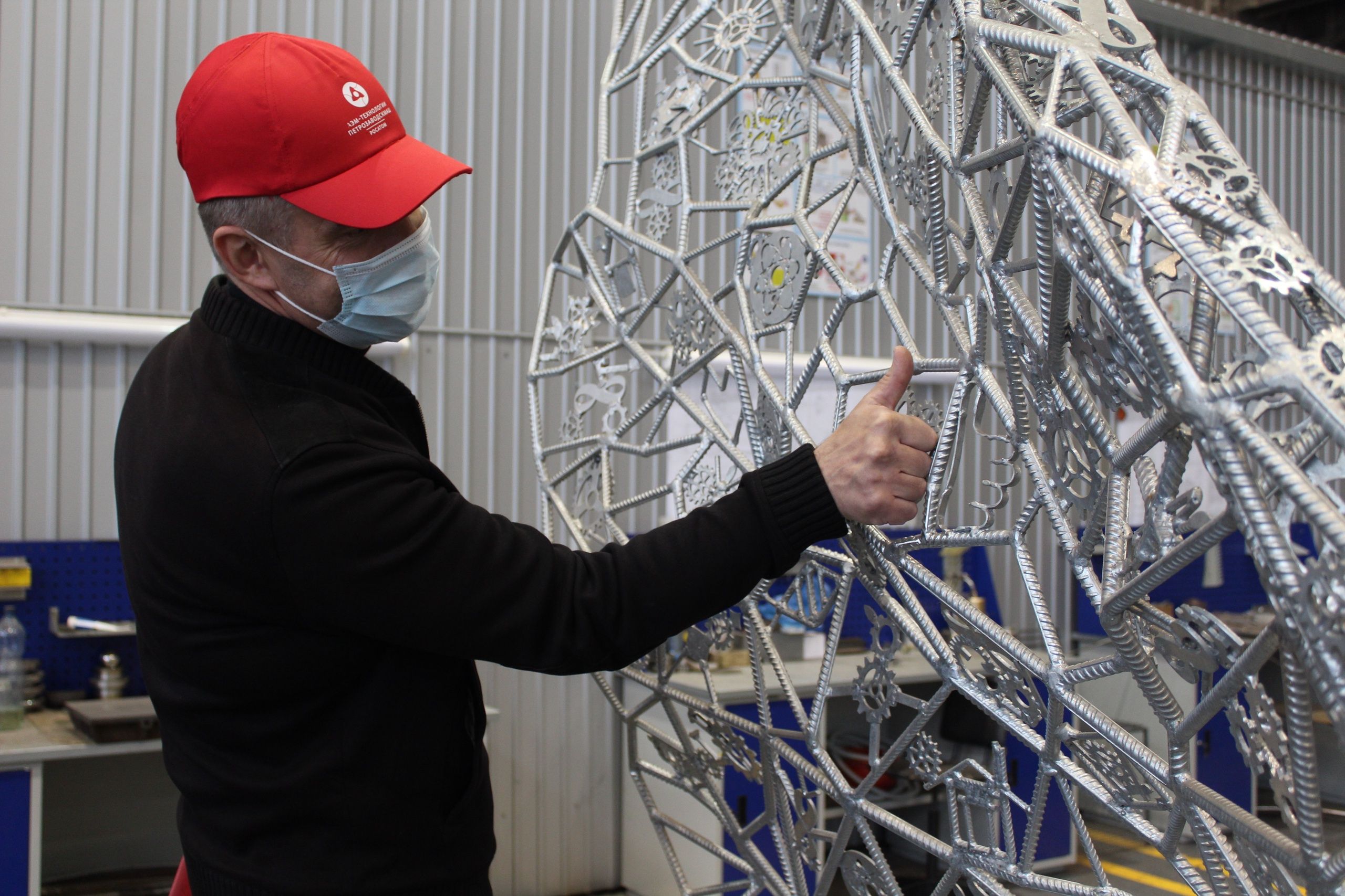 «Королева сварки» из Москвы изготовила каркас для скульптуры, а непрофессиональные сварщики наполнили фигуру разными элементами – получилось подобие металлического кружева.