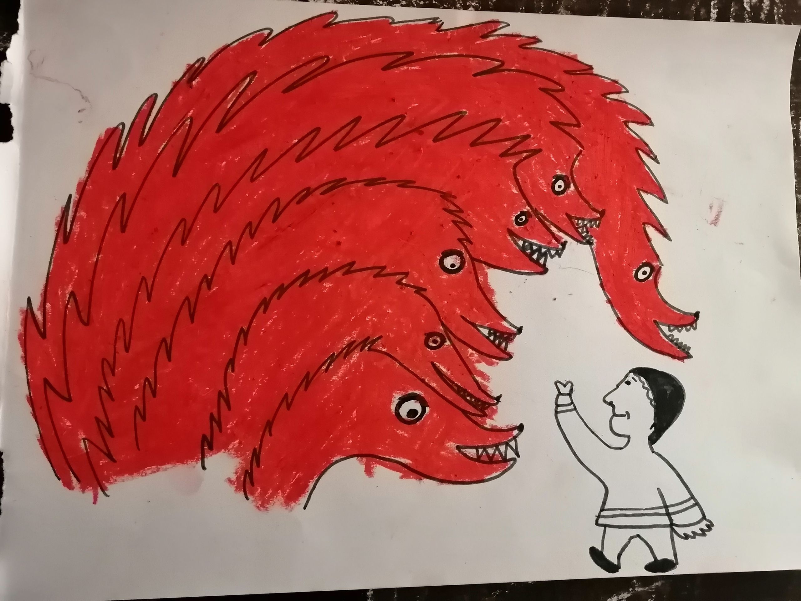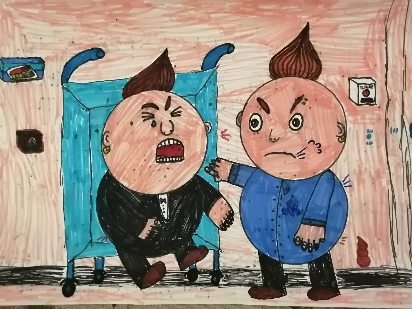 Степа тоже свое рисует, но нам удалось интегрировать образы, которые его волновали в иллюстрацию к известной сказке. Степа всегда безошибочен в композиции, у него есть свой стиль. Он свободно достает из памяти свои собственные изображения. Степа не перерисовывает чужие иллюстрации, поэтому с ним легко работать. Поскольку он тяготеет к четкости и ритму в рисунке и в жизни, то ему ближе твердые материалы, которые дают возможность максимально декоративного рисунка. В данном случае это были акриловые маркеры, рассказала педагог Степы.