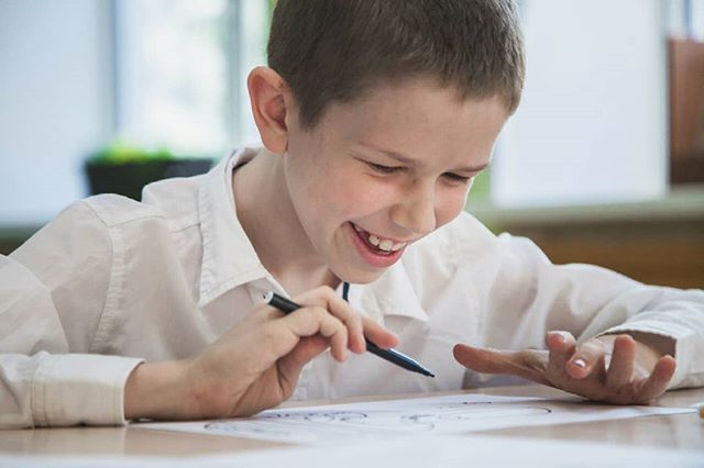 Для нас это был прорыв. Когда ему было 5 лет, с нами стала заниматься арт-терапевт Ольга Калмыкова. Пририсовывая к его цифрам и буквам глазки, она постепенно его вывела на рисование всякого разного.