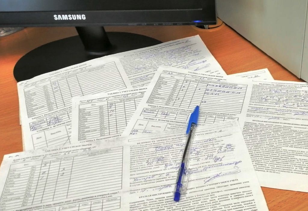 Более 700 километров по заранее намеченным маршрутам прошли инспекторы парка зимой 2022 года, отмечая, где встречены следы зверей, где вспорхнула птица, погрызы на стволах деревьев, поломанные ветки – эта информация поможет ученым понять жизнь леса.