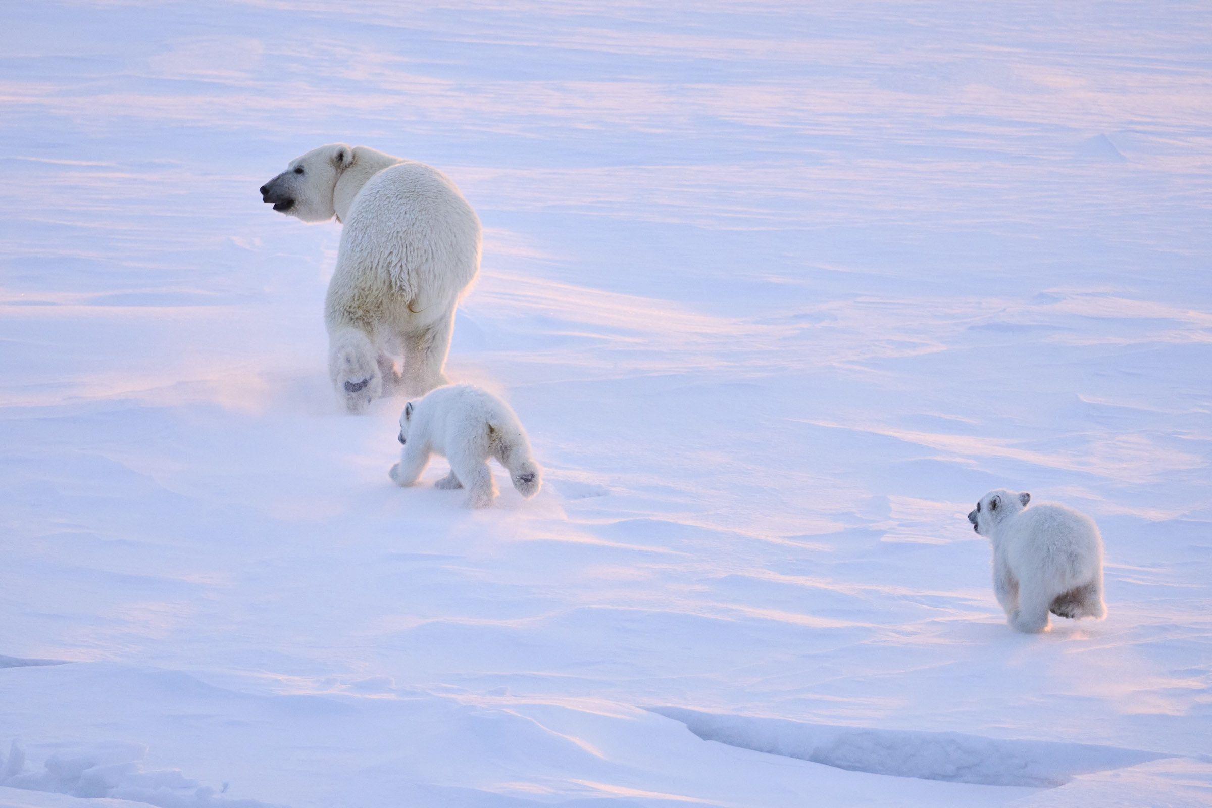 Видели вдалеке белого медведя. Шел параллельно ледоколу. Все выбежали смотреть.