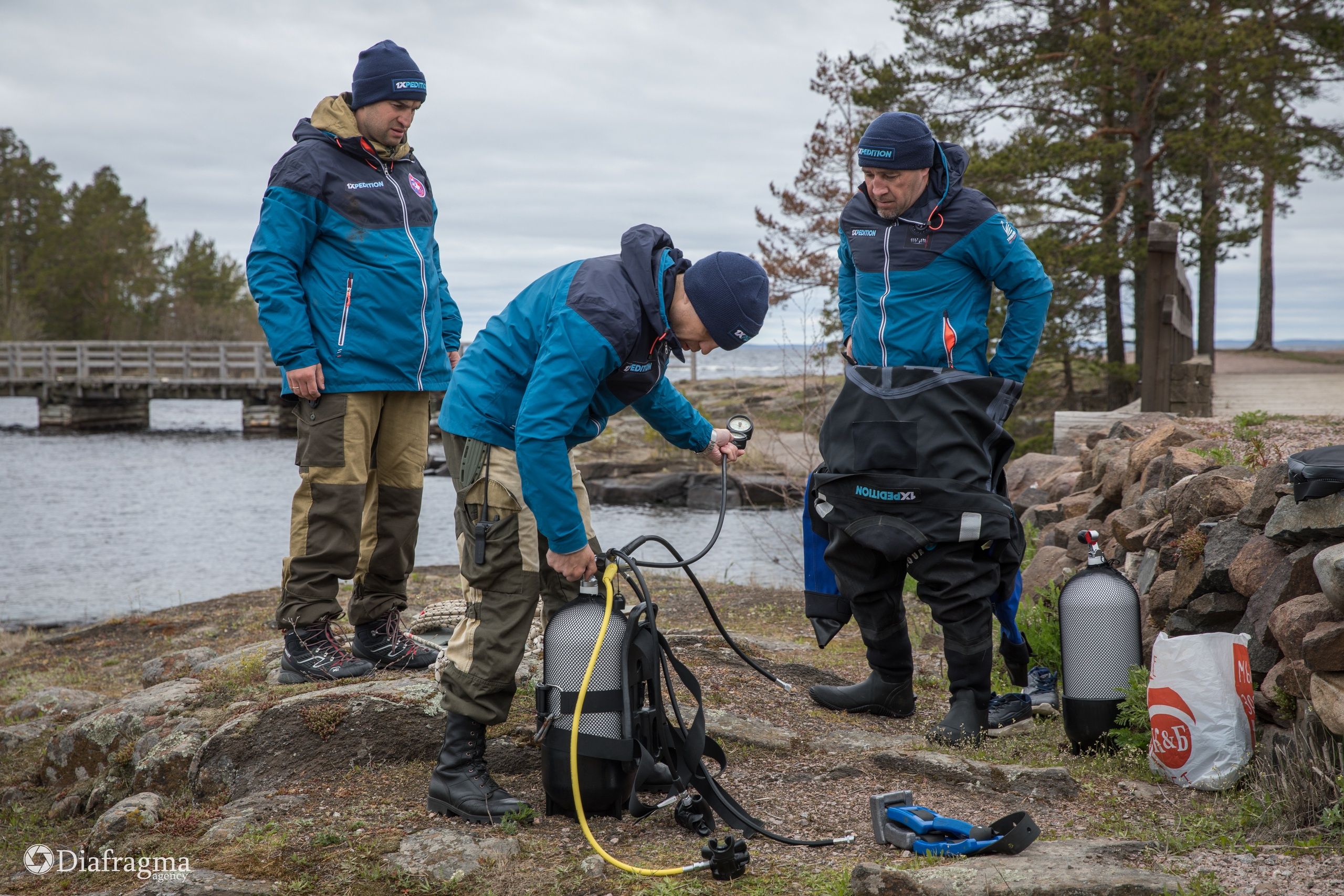 Поисковые работы дайверов клуба «Диво» на о. Валаам начались в монастырской бухте у Никольского скита. Команда научно-исследовательского проекта 1XPEDITION осмотрела предполагаемое направление дороги, проходившей по льду, во время Советско — финской войны. Определены границы поиска.