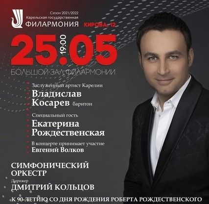 В концерте принимают участие Екатерина Рождественская и актер Евгений Волков. В фойе филармонии Национальная библиотека представит книжную выставку раритетных изданий стихов Роберта Рождественского в Карелии. Начало концерта в 19:00 (возрастное ограничение — 6+)