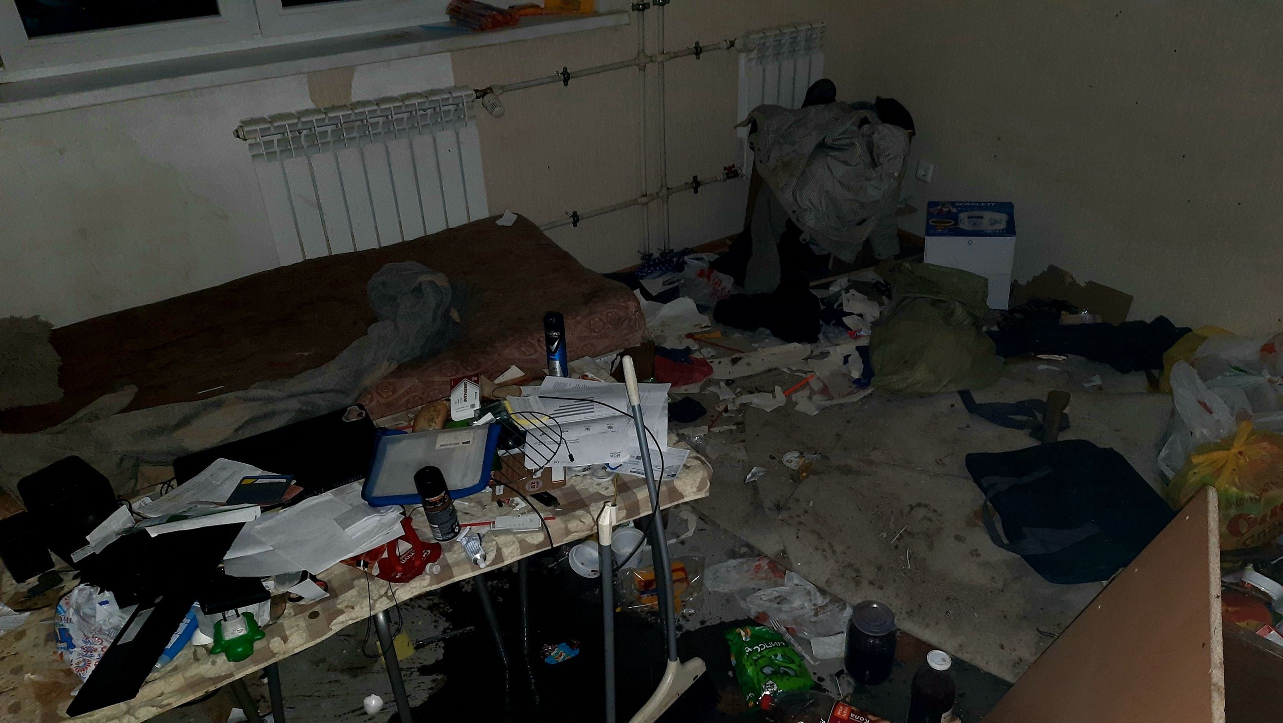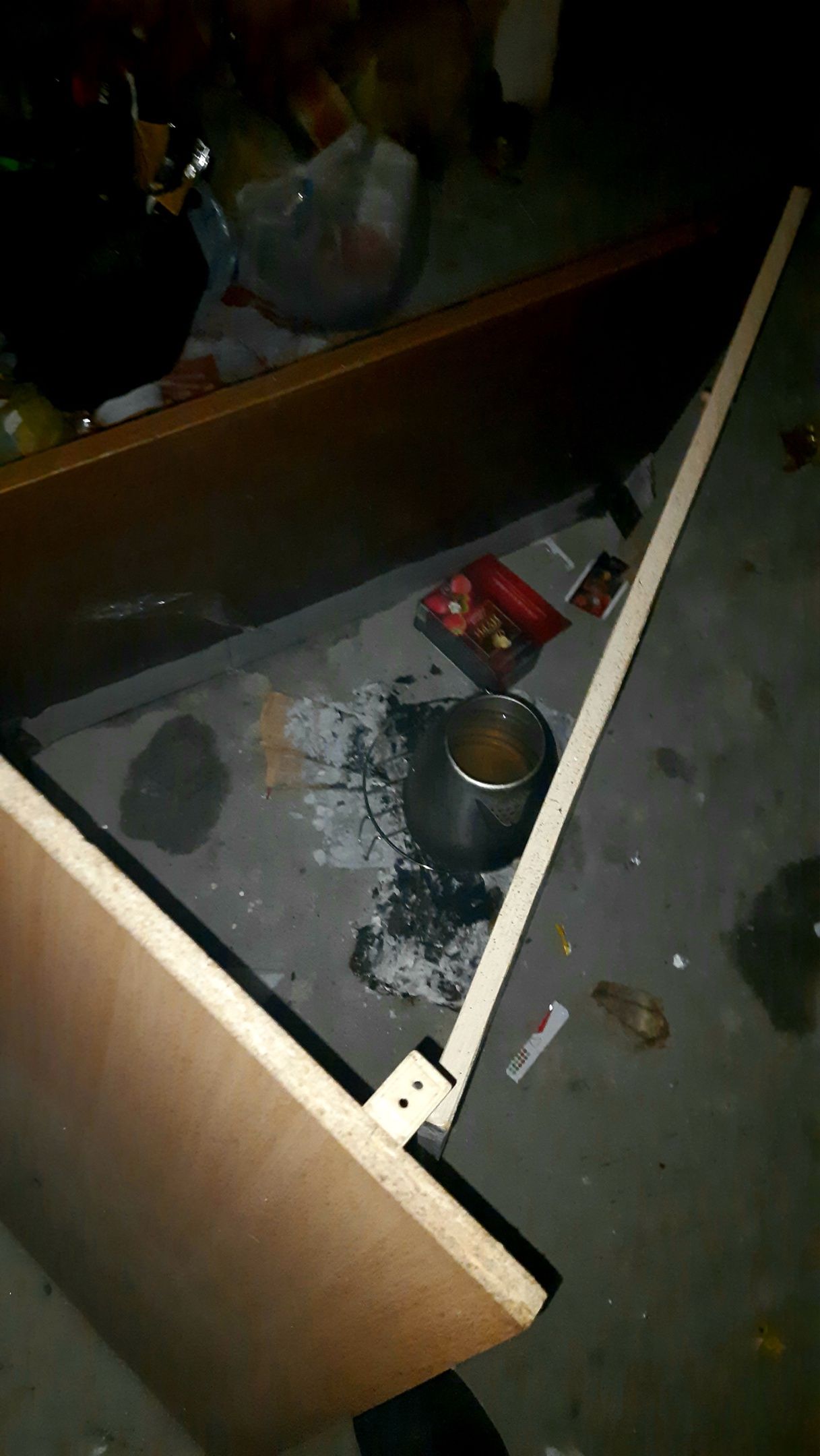 Посреди сильно захламленного помещения жилец разжег костер, на который был установлен электрочайник. Пожар был ликвидировали, люди вернулись в свои квартиры.