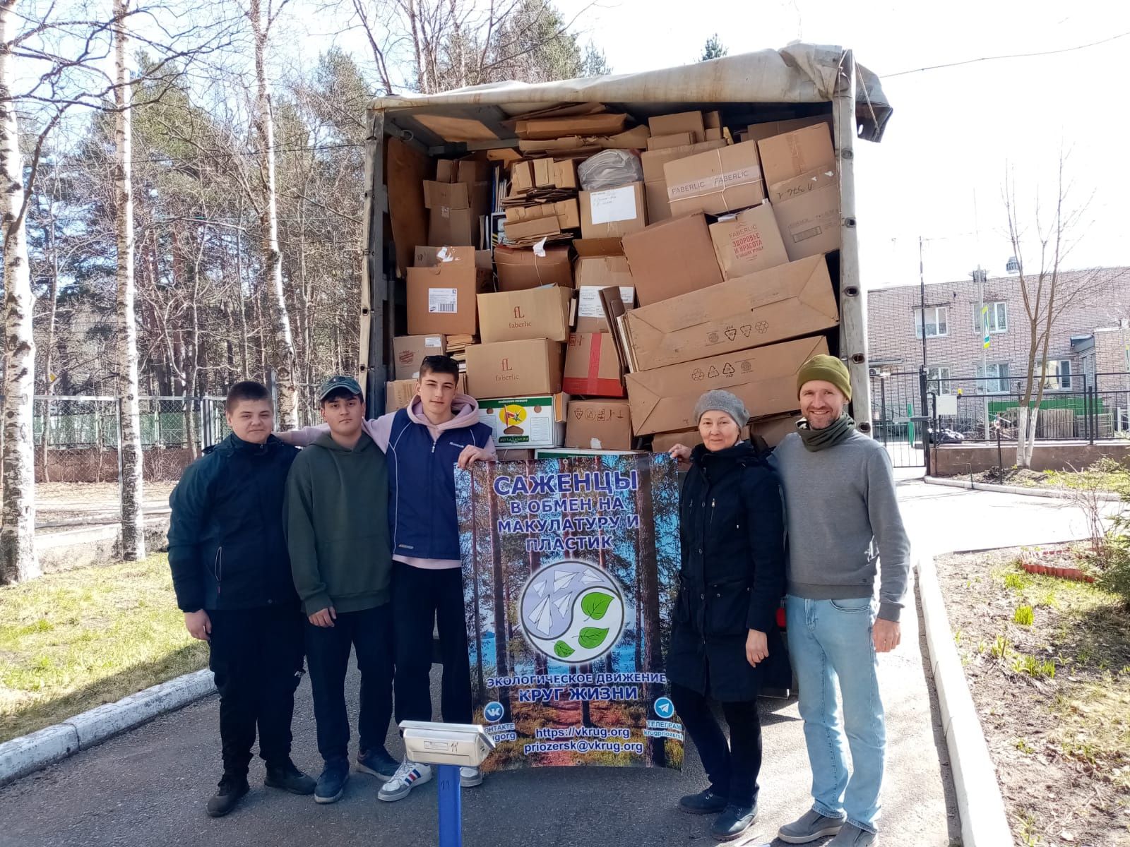 Движение «Круг жизни» — всероссийское, оно появилось 5 лет назад. За время существования было сдано на переработку 950 тонн макулатуры – это 135 мусорных контейнера (КамАЗа), плотно забитых мусором, посажено 17 800 деревьев – это 60 футбольных полей городского леса (около 60 га).