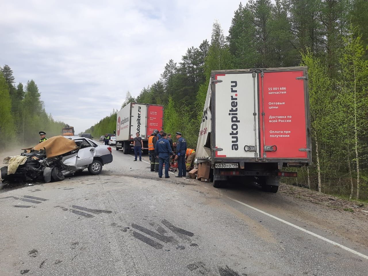 В ГИБДД Карелии подтвердили факт аварии. В ведомстве уточнили, что авария произошла в 09:45 на 6 км + 520 м региональной автодороги «Подъезд к г. Сегежа». По предварительным данным, 79-летний водитель автомобиля «Лада Гранта» допустил выезд на полосу, предназначенную для встречного движения, где совершил столкновение с автомашиной «Луидор», двигающимся во встречном направлении. В результате ДТП водитель грузовика травмирован, водитель «Лады» погиб на месте ДТП. Обстоятельства ДТП устанавливаются.