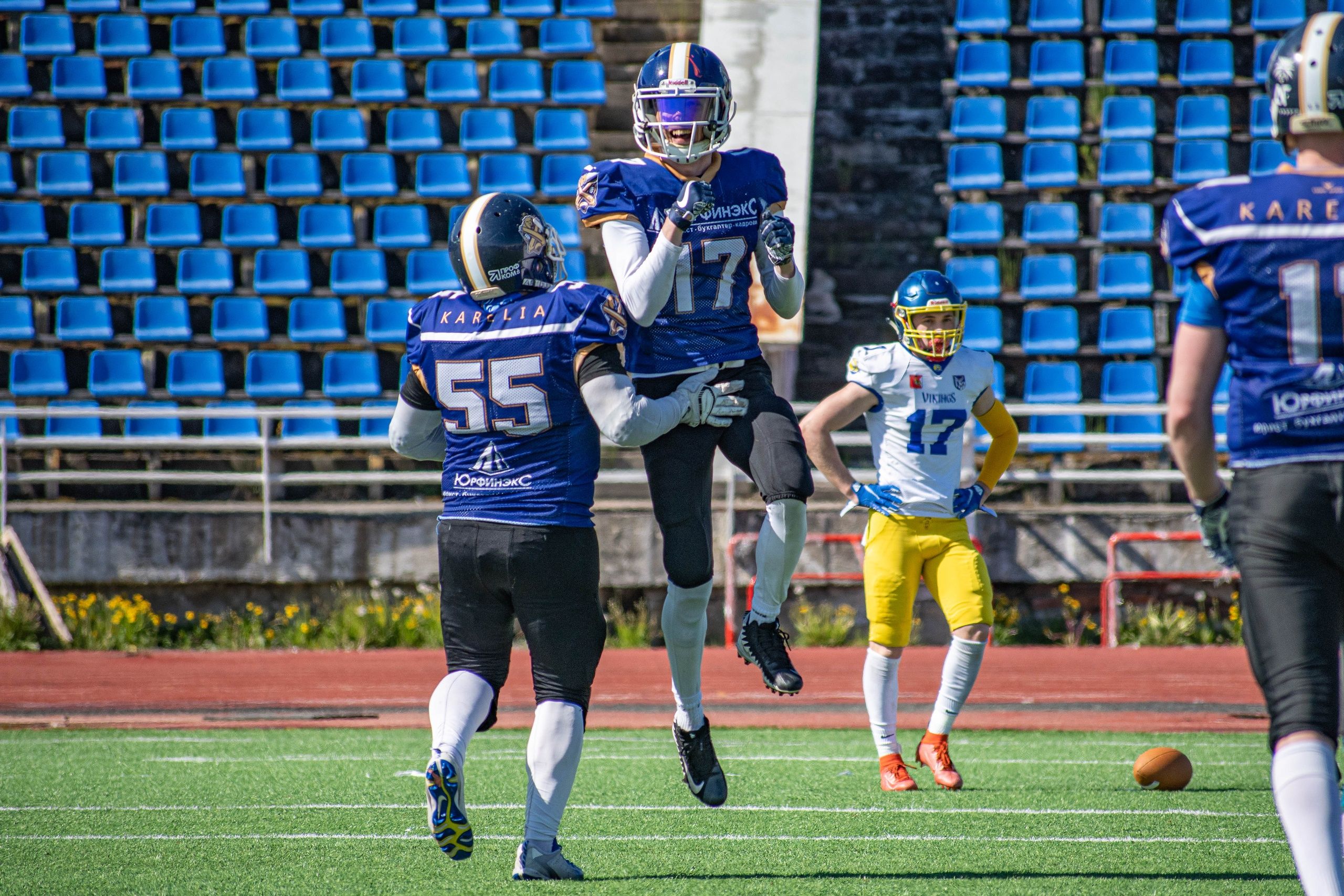 «Главное — не расслабляться и продолжить работу над ошибками» — это о планах на дальнейшие игры. Напомним, «Карельские оружейники» принимают участие в Чемпионате России по американскому футболу. Играют в Первой лиге. Она объединяет 12 команд со всей страны, которые разделены на 4 дивизиона по географическому принципу, рассказывают футболисты.