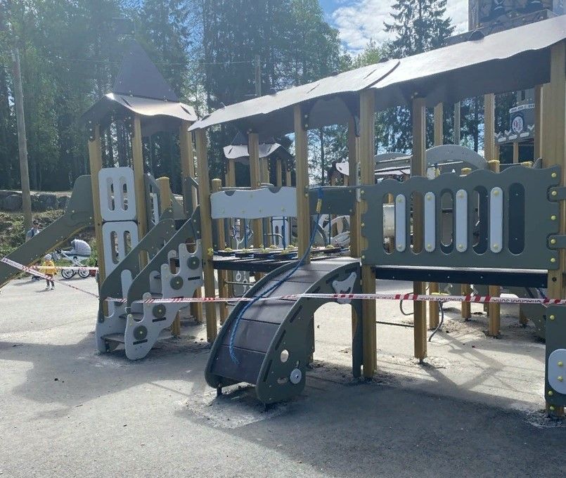 Еще одна площадка в Карелии, находится она в Костомукше, является небезопасной для детей. Это подтверждают сотрудники Следственного комитета. От местной администрации они потребовали заменить асфальтовое покрытие на резиновое. Произошло это после падения ребенка с горки. Сейчас площадка обтянута сигнальной лентой вплоть до завершения работ, говорят в администрации.