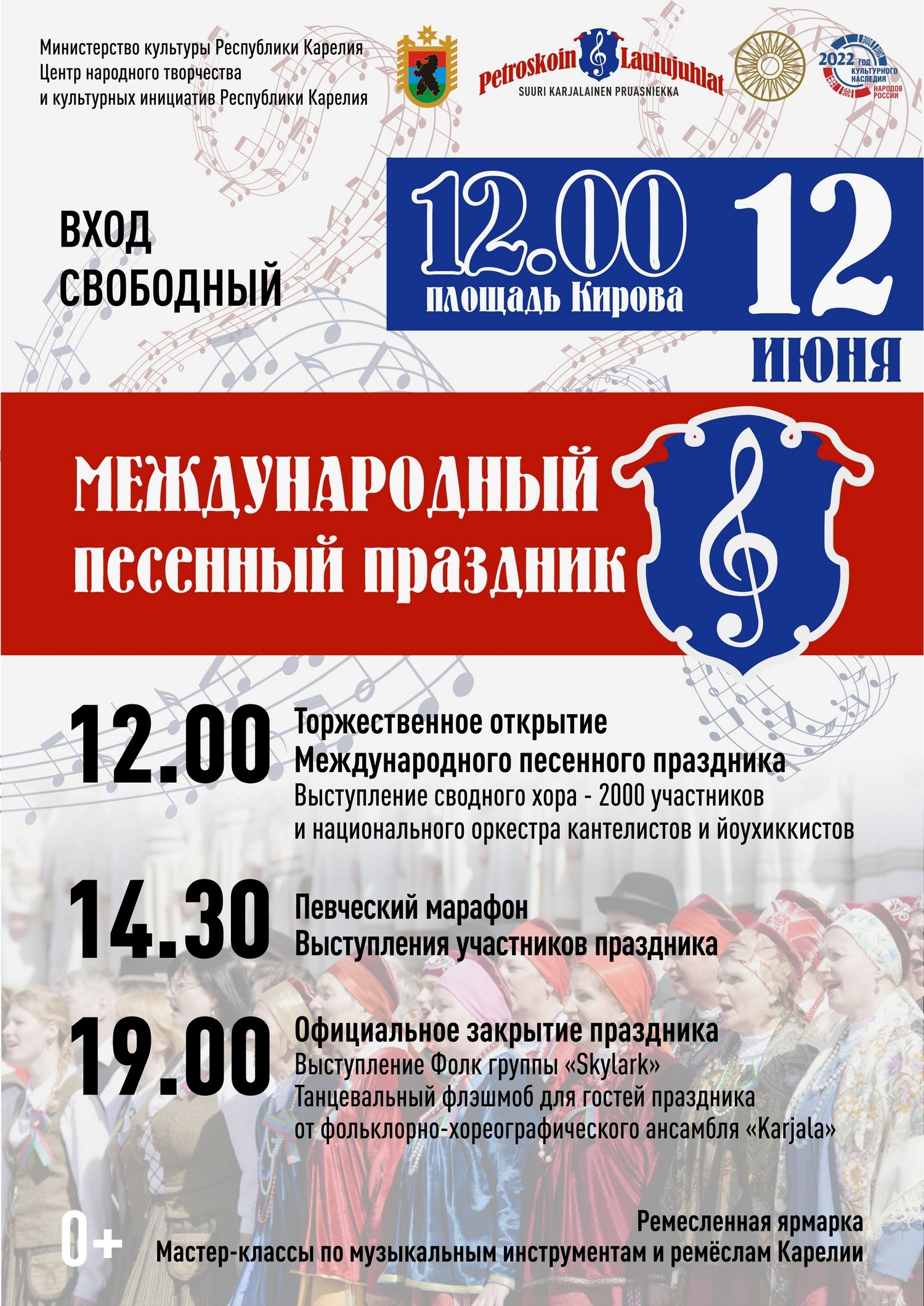 12 июня гости и жители Карелии станут свидетелями масштабного события, познакомятся с песенной и инструментальной культурой Карелии, а также смогут приобрести памятные сувениры.