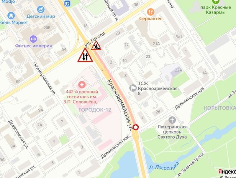 Сейчас здесь закрыта для проезда часть улицы Гоголя – от Анохина до Красноармейской. Завтра Гоголя откроют. Но с 15 июня будут продолжены работы на Красноармейской улице. Реконструкция теплосетей запланирована на средней и крайней правой полосе дороги в направлении «Кукковка – Центр». Двустороннее движение будет обеспечено. Его организуют по участку дороги в направлении Центр – Кукковка. Поворот с полосы в сторону Центра на перекрестке будет осуществляться налево к Гоголевскому мосту.