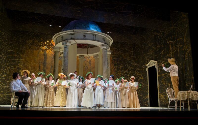 Место выбрали не случайно. Изображение ротонды стало главной декорацией постановки, которая идет в театре уже больше 10 лет. И вот впервые артисты Музыкального театра выйдут к «первоисточнику» и исполнят «Евгения Онегина» на набережной.