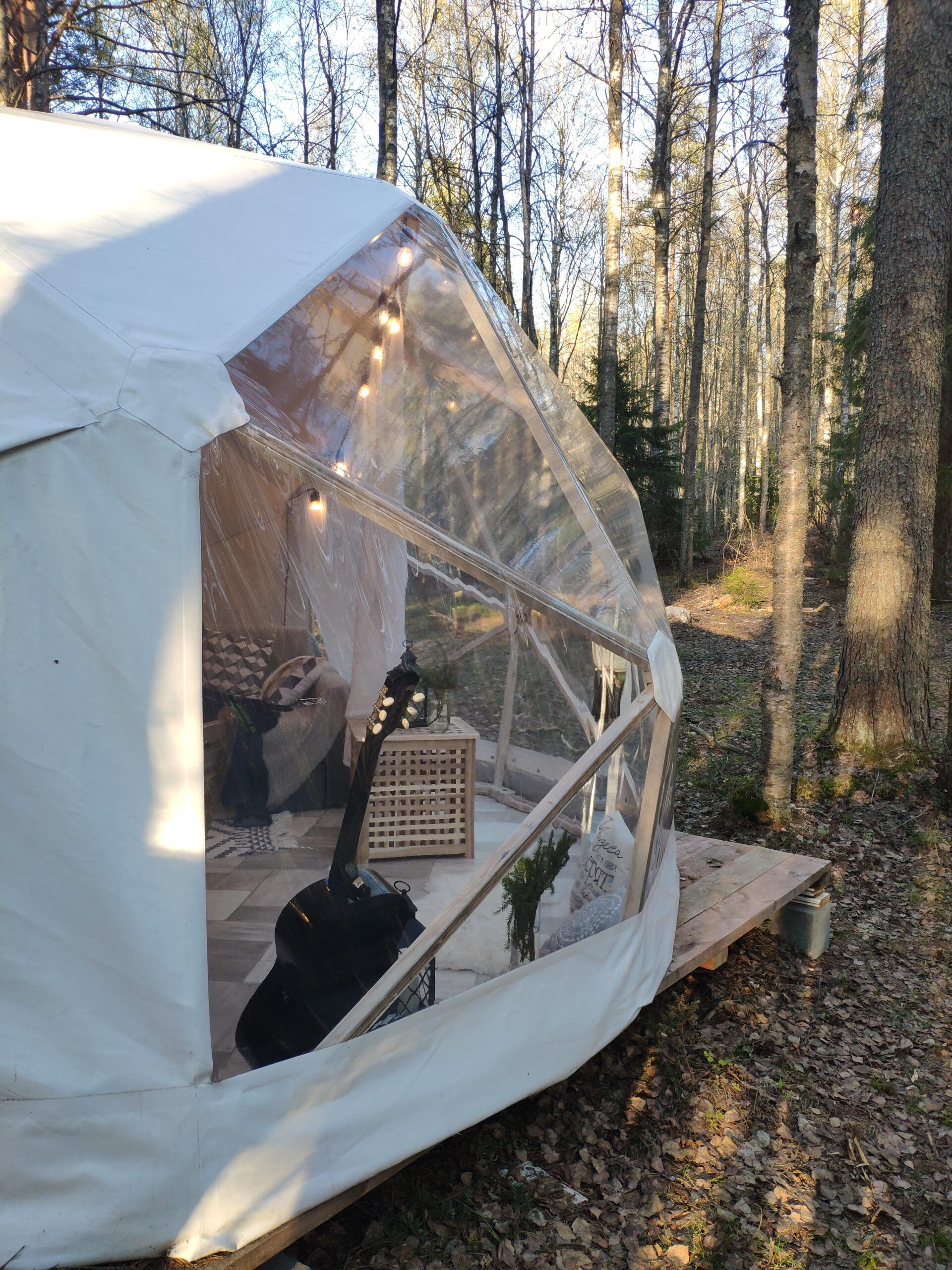 Николай признается, что 70-80 процентов их гостей – как раз пары. Люди путешествуют в Карелию, по стране, ищут, где переночевать. Многие смотрят в Интернете как раз варианты глэмпингов. Им не хочется в гостиницы, в шумный город, не готовы они платить и за большие гостевые дома, которые, как правило, летом дороги и все забронированы. А тут – все удобства есть, питание, кровать с видом на сосновый бор. И главное – тишина.