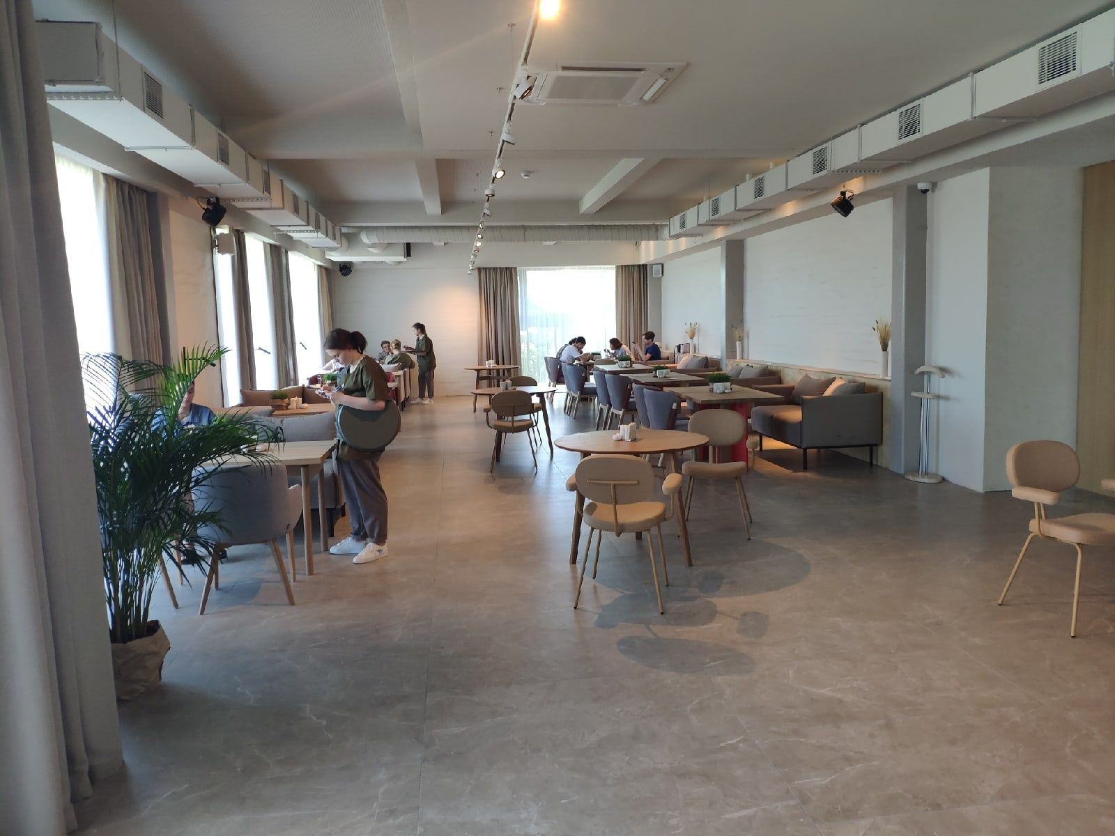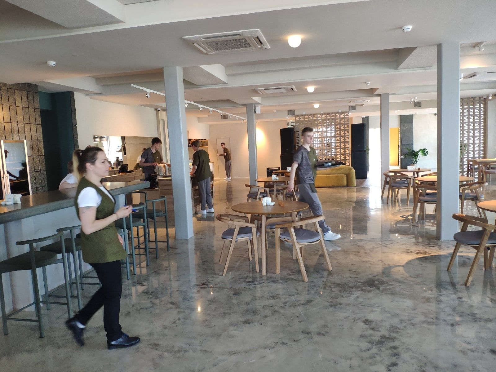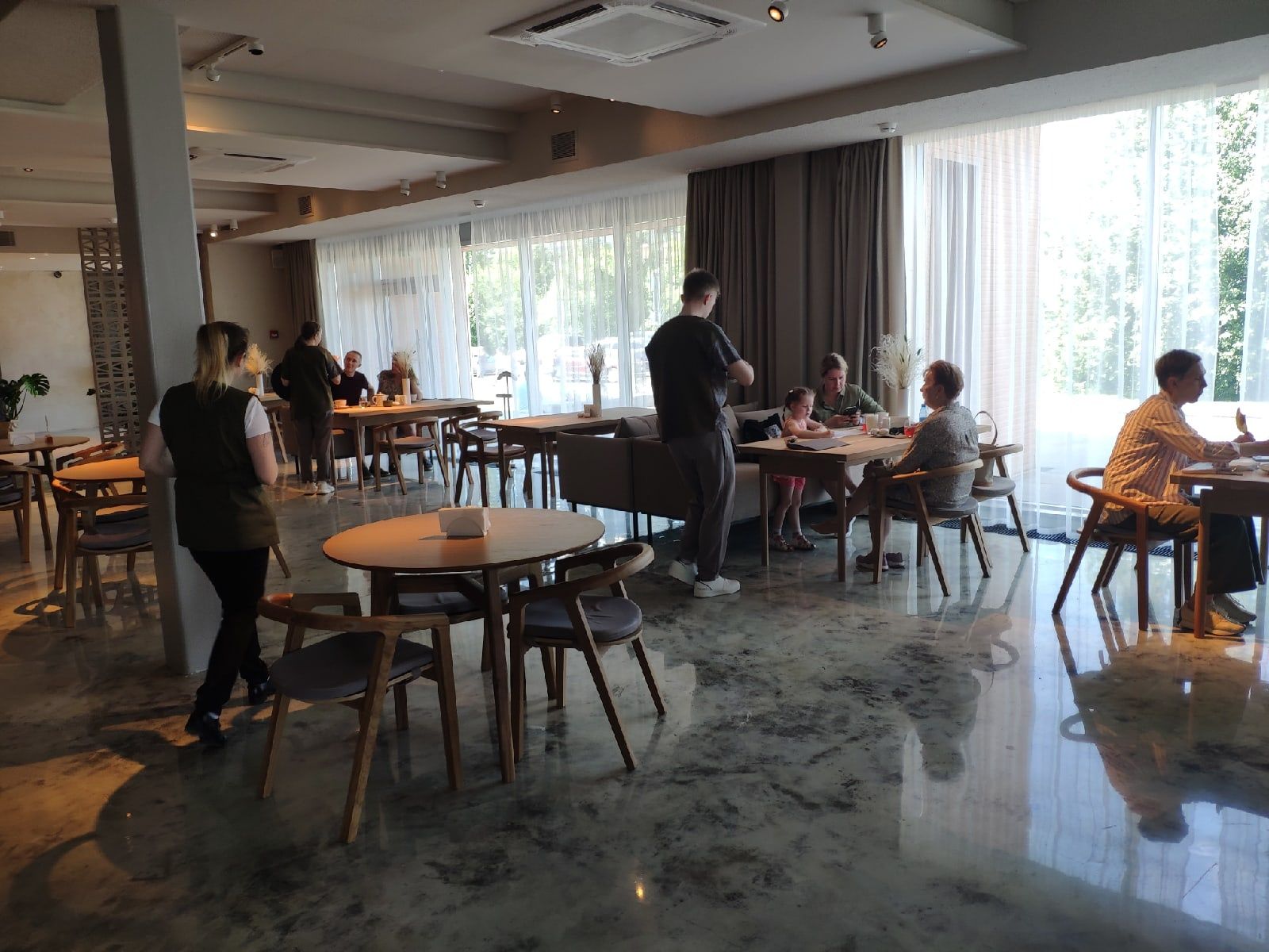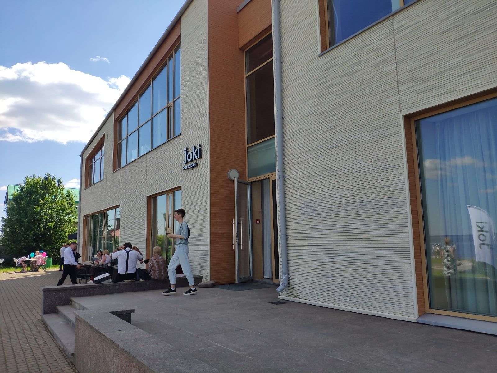 «Joki» открыл свои двери 24 июня, сегодня в ресторане тоже довольно много гостей. Интерьер выполнен в скандинавском стиле – это светлые тона и природные материалы. Из окон открывается вид на Онежское озеро. В меню – блюда из местных продуктов – из Карелии и Мурманской области.