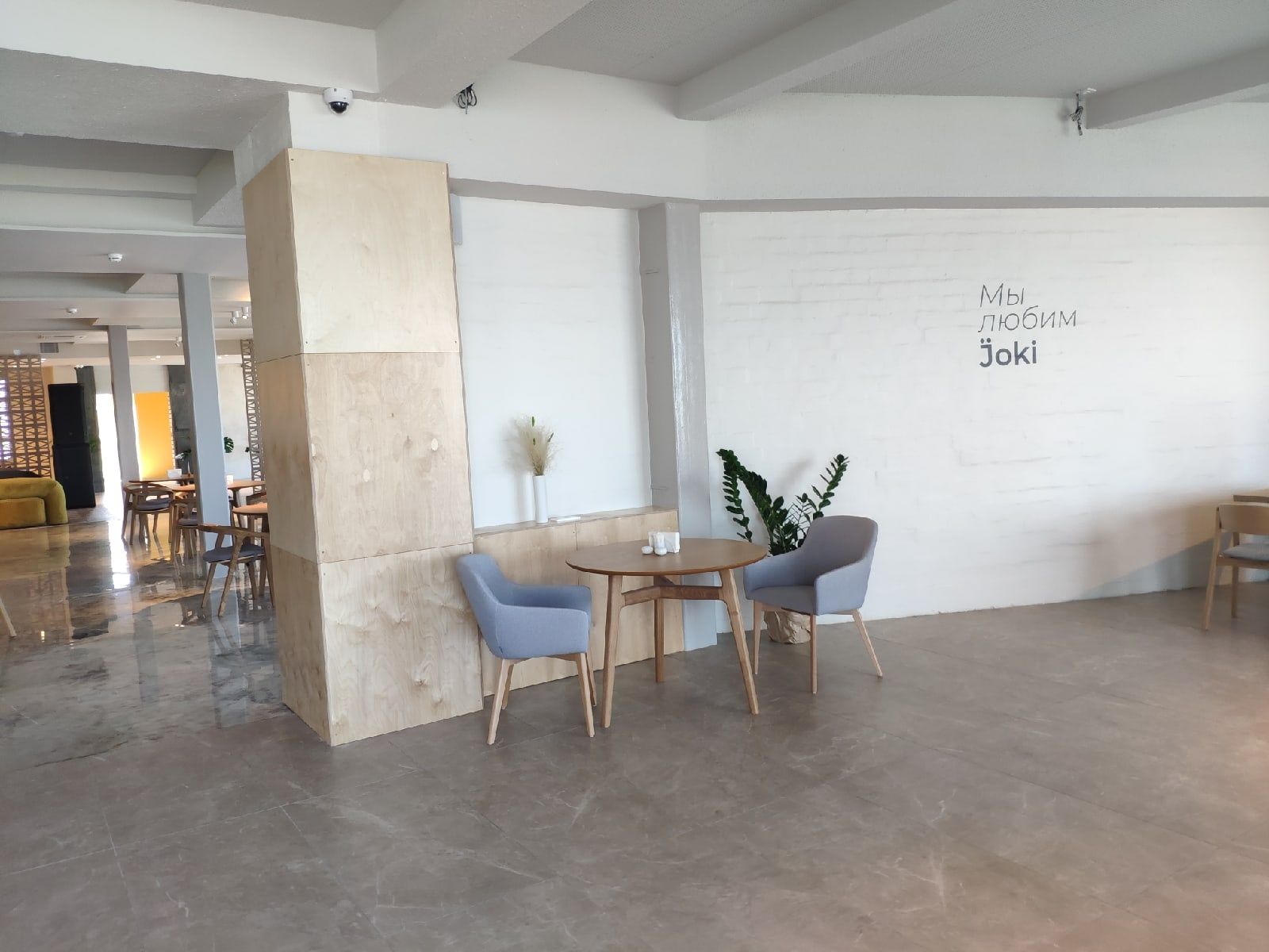 Ресторан называется «Joki» — слово переводится с карельского и финского как река, что намекает на специализацию на национальной кухне. Интересно написание названия – над буквой J поставили две точки. Такой знак называется умлаутом, и обычно его ставят над гласными.