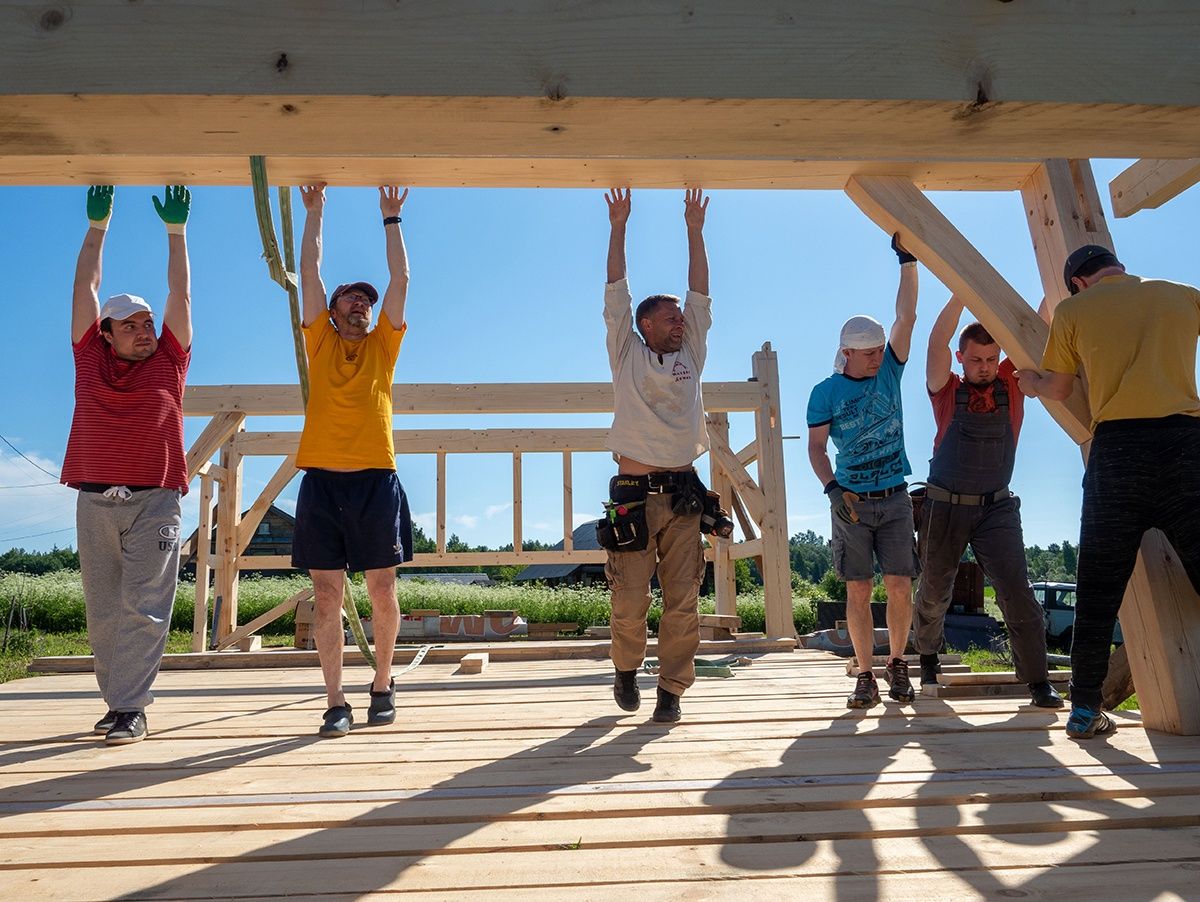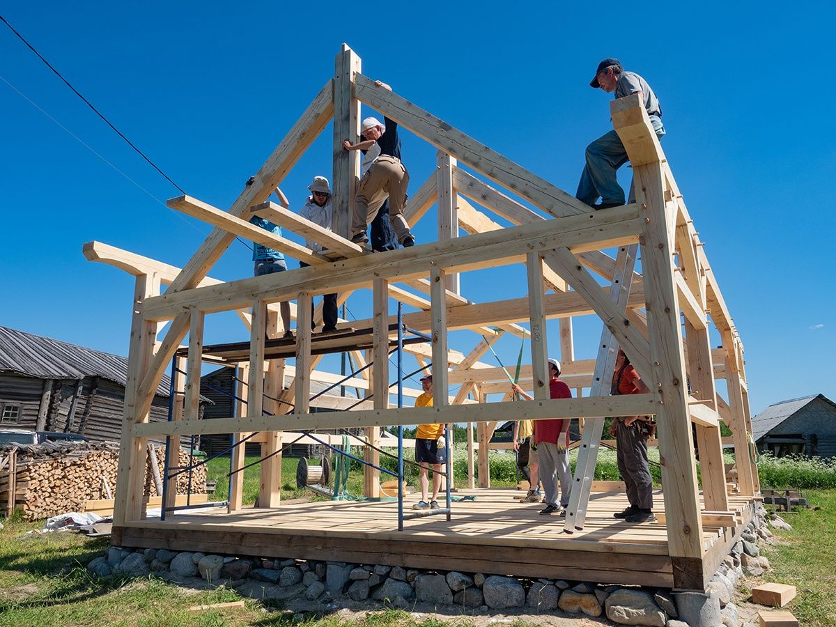 За строительством следил друг нашей редакции фотограф Игорь Подгорный. Как рассказал Игорь, за полторы недели участники мастер-класса из разных уголков России под руководством Павла Притупа из Ведлозера делали детали каркаса павильона 6х10 метров. Павел Притуп, к слову, это тот самый знаменитый многодетный отец, о котором писали многие СМИ и который вместе с супругой, гражданкой США, переехал из-за океана в карельскую деревню.