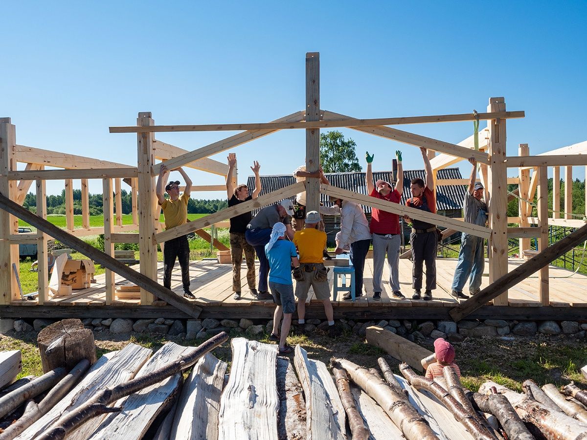 25 июня в карельской деревне Кинерма в Пряжинском районе завершился мастер-класс по технологии тимбер-фрейм. Результатом стал новый павильон.