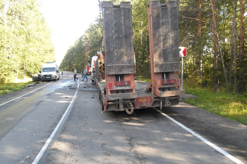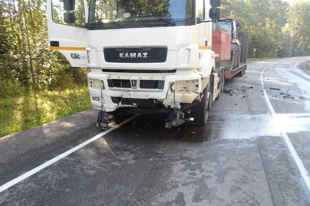 Утром 19 июля на 11-м километре трассы Медвежьегорск-Великая Губа произошло серьезное ДТП. По информации пожарного отряда Медвежьегорска, легковой автомобиль «Рено» при выполнении обгона выехал на встречную полосу и совершил лобовое столкновение с двигающимся навстречу грузовиком для перевозки техники «КамАЗ». В результате аварии женщина-водитель автомобиля «Рено» получила травмы и была доставлена в Медвежьегорскую ЦРБ.