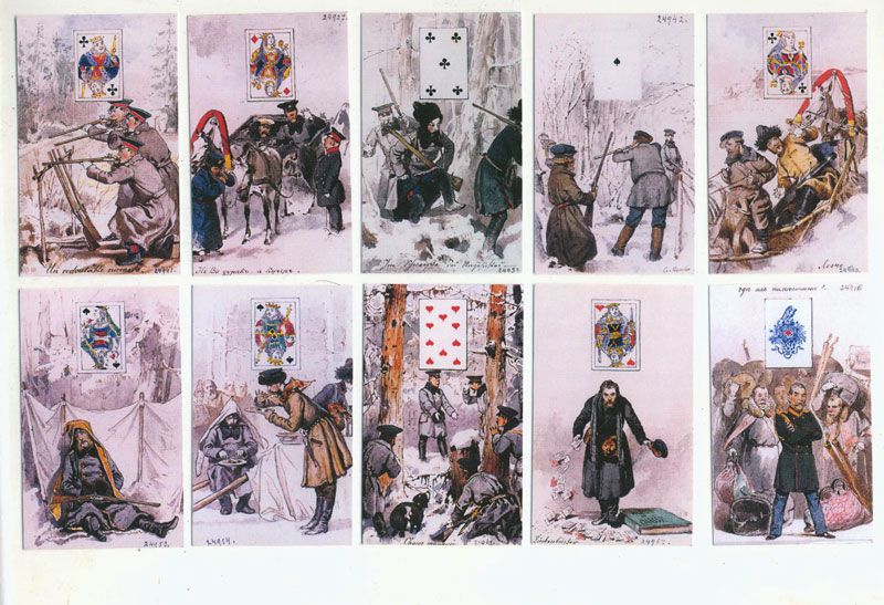 Михай Зичи известен как автор иллюстраций к произведениям М.Ю. Лермонтова, А.С. Пушкина, Н.В. Гоголя и других писателей. Главной же темой своего творчества Зичи считал императорскую охоту, сюжеты из которой стали основой многих его графических и акварельных серий. Именно по мотивам зимней охоты императора Александра II, которая проходила в 1860 году, художник разработал комплект из 52 карт-юморесок. Оригиналы этих карт сейчас хранятся в Эрмитаже, они выполнены в акварели на тонком картоне и имеют миниатюрный формат – 9х5,5 см.