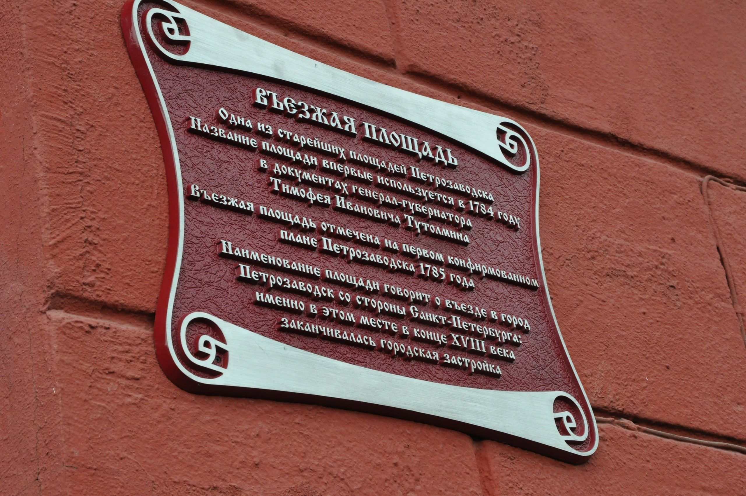 Впервые название «Въезжая площадь» появилось в документах генерал-губернатора Тимофея Тутолмина в 1784 году, а в 1785 было отражено на первом конфирмованном плане города.