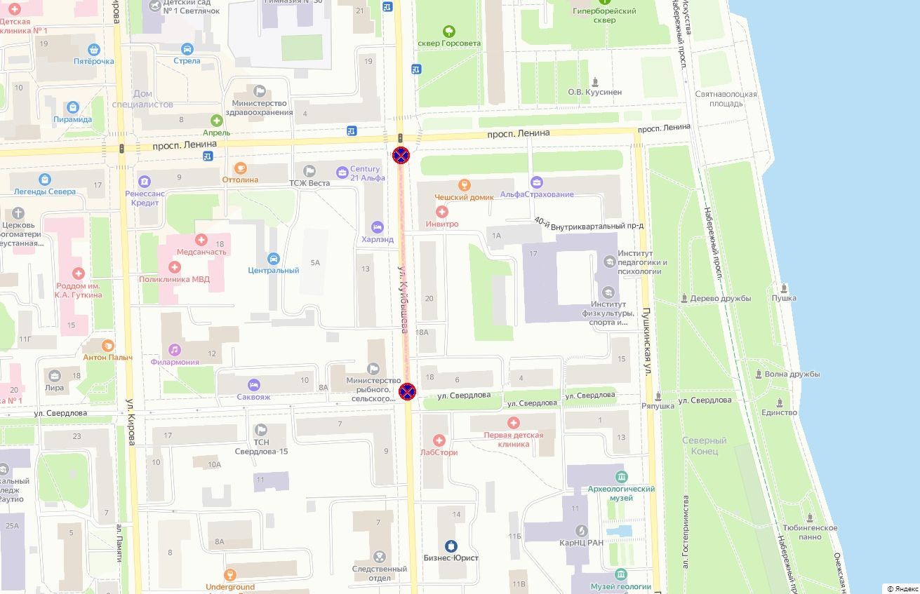Кроме того, остановка транспорта будет запрещена по обеим сторонам улицы Куйбышева. Ограничение будет действовать на участке между проспектом Ленина и улицей Свердлова.