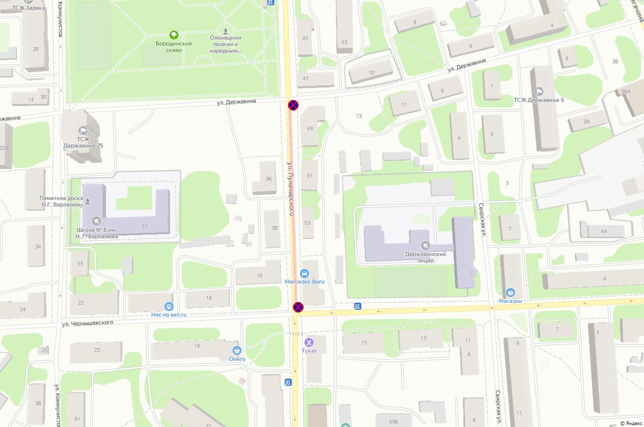 С 25 августа изменится схема движения транспорта на Зареке и в центре Петрозаводска. Об этом сообщили в городской администрации. На нечетной стороне улицы Луначарского запретят остановку. Заперщающие знаки будут действовать между улицами Чернышевского и Державина.