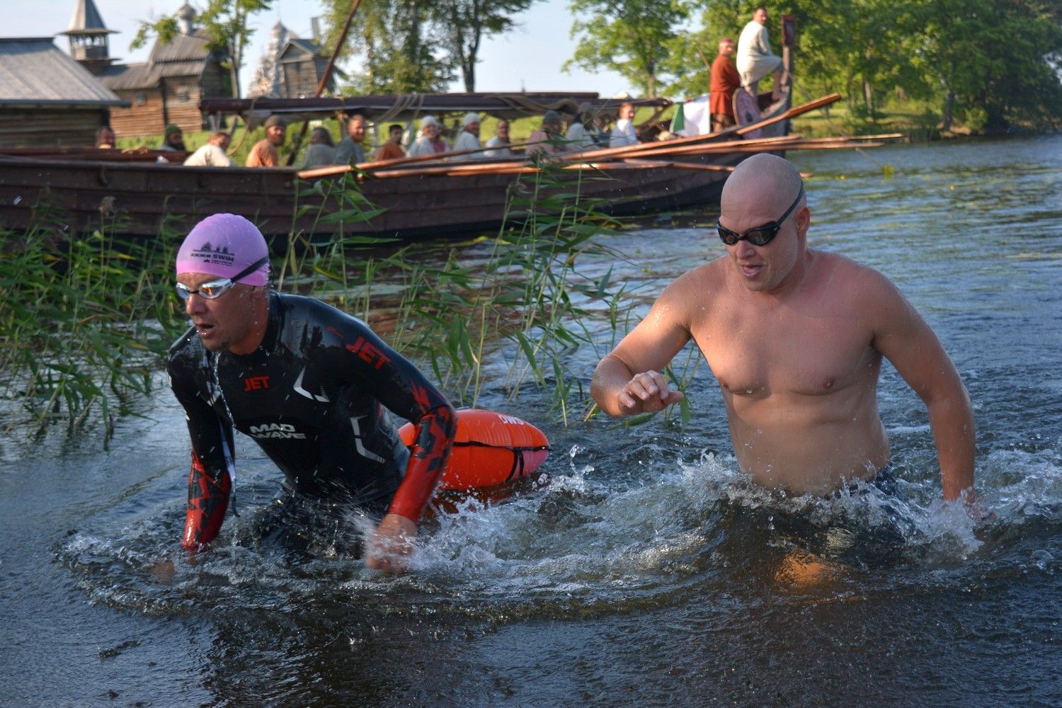 Много среди участников москвичей, которые приехали с друзьями, целыми семьями. Подкупила уникальная возможность – посмотреть на памятники деревянного зодчества под другим углом. Были и местные пловцы, которые решили испытать себя в нашем Онежском озере.