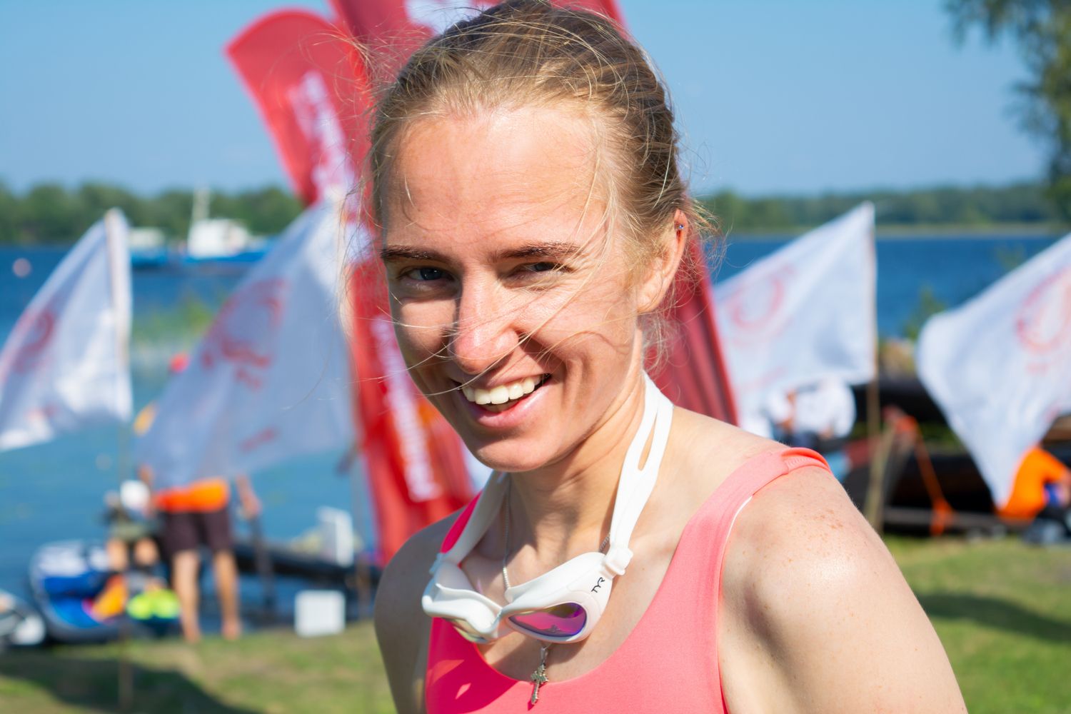 Участников было 24, поэтому старт сделали общим на 0,5; 1 и 2 мили. На заявленные 3, это около 6 км, желающих не нашлось, говорят организаторы. Все-таки такая дистанция требует серьезной подготовки и навыков. А участники заплыва – это не спортсмены, любители, которые в свободное от работы время занимаются плаванием. К примеру, Ксения из Санкт-Петербурга проектирует атомные станции, много времени проводит за компьютером в офисе, ей просто необходимо разминаться.