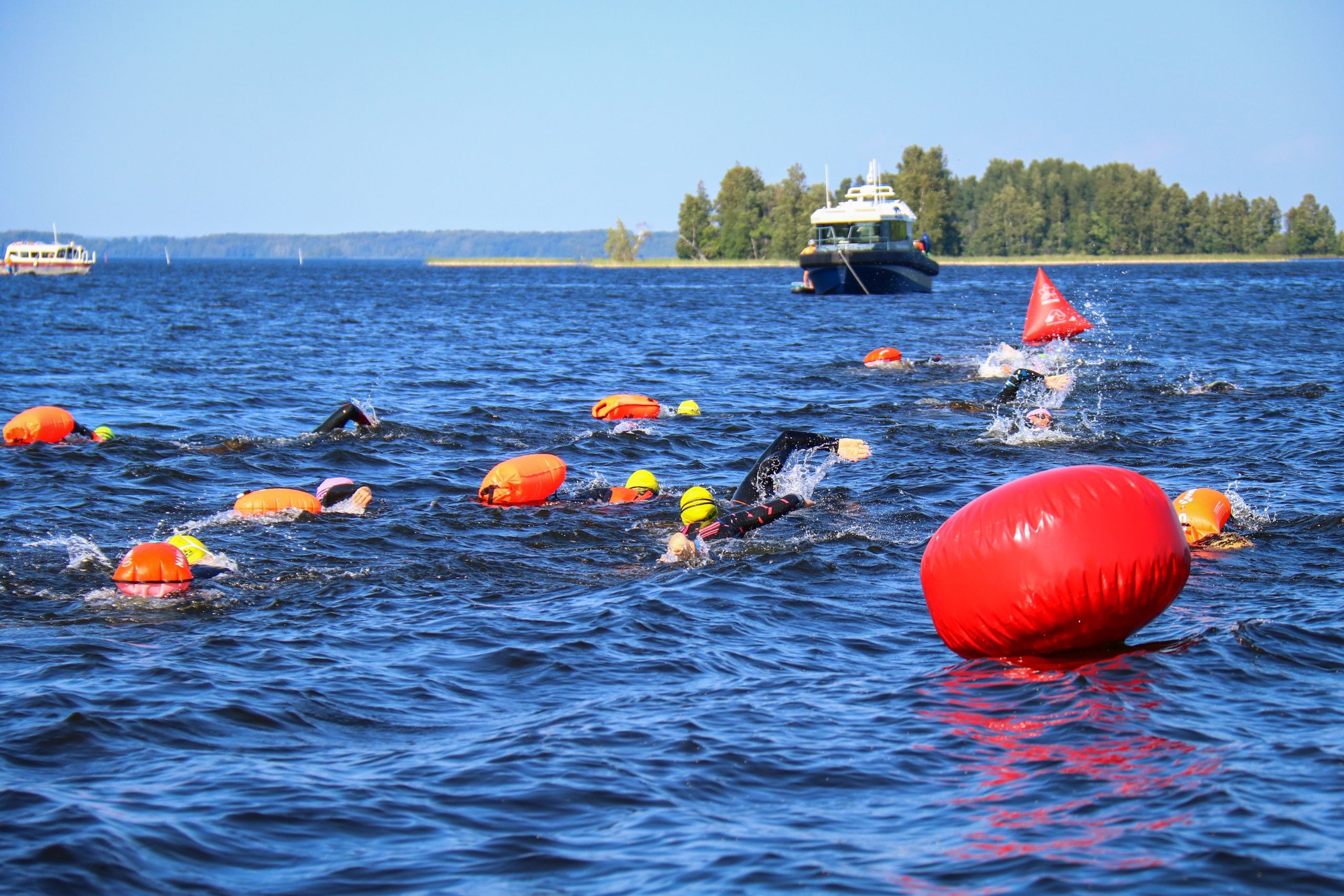 По прибытии всех участников ждали экскурсии по острову и его главной достопримечательности – Преображенской церкви. В этом году дата заплыва совпала с Кижской регатой. Так что спортсмены перед собственным стартом вдохновлялись гонками на лодках разных видов и классов.