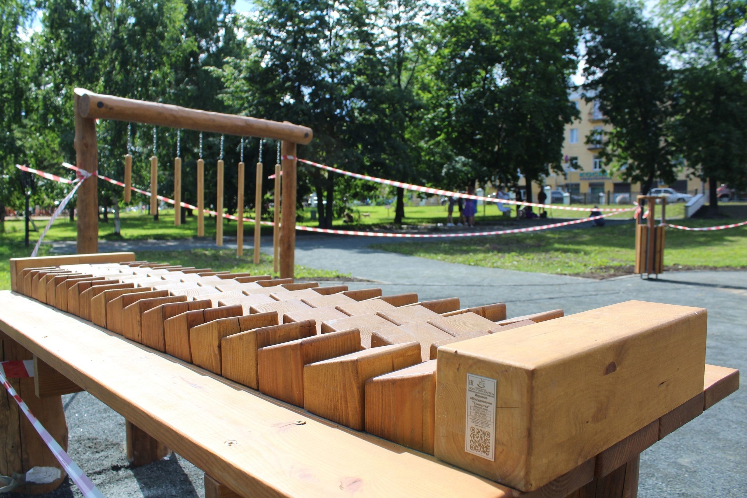 На месте уже смонтированы конструкции, изготовленные из лиственницы. Играть на площадке смогут дети с разными возможностями здоровья и потребностями в развитии. Также конструкции можно будет использовать в качестве музыкальных инструментов. Среди элементов детского городка – «Голосовая почта», «Маленький и большой ксилофон», «Трещотка», «Колокольчики».