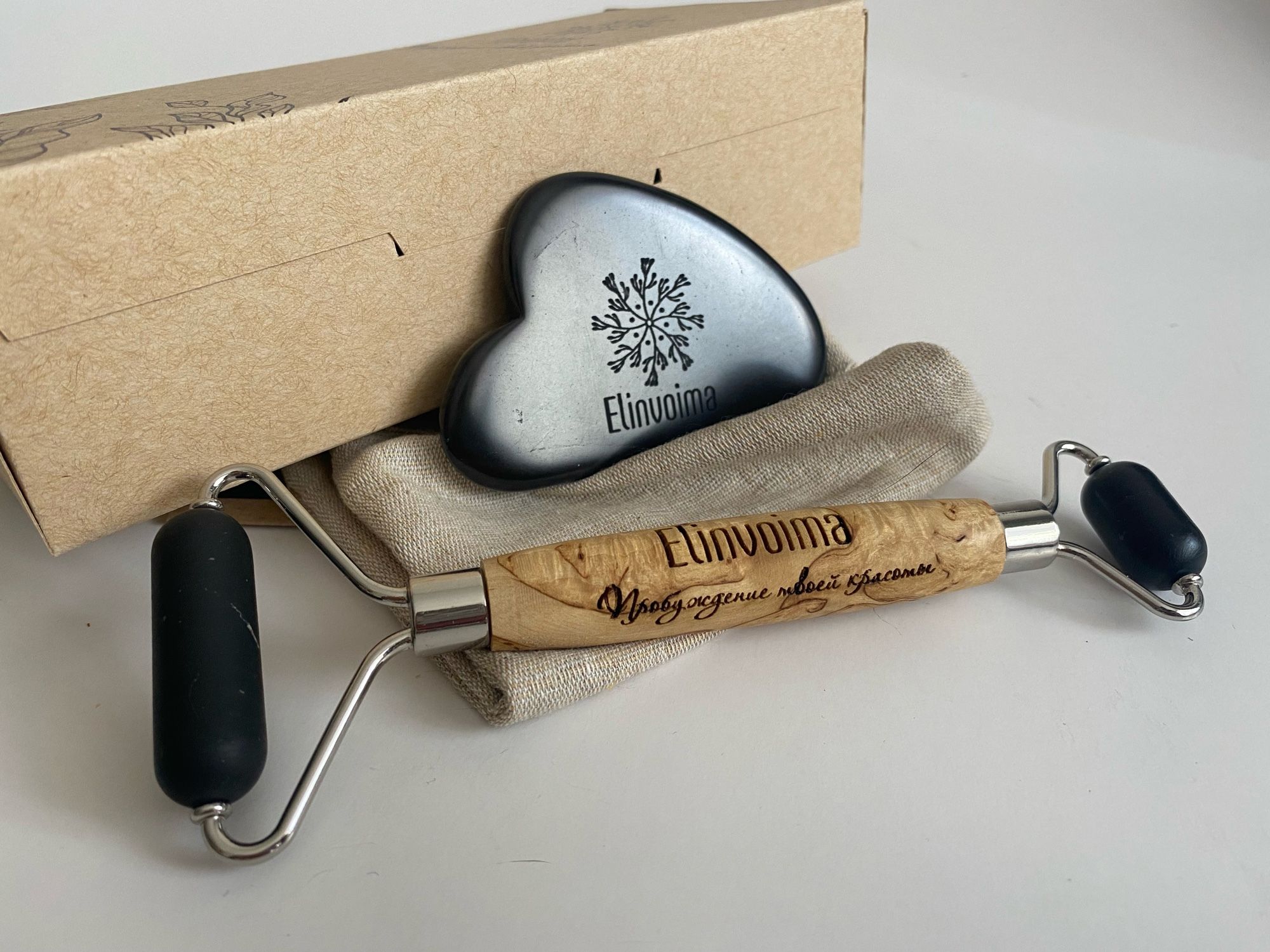 Производство запустили в декабре. Что-то изготавливают на заказ, что-то в мастерской делает супруг, затем все пакуется в крафтовые коробочки. После публикаций в соцсетях пошли первые заказы, сначала в основном от знакомых. Потом заработало сарафанное радио – подруги покупали массажеры в подарок. Один увезли в Сочи, другой – за границу. Вскоре на гуаша обратили внимание в клинике «Кивач». Представители крупнейшей карельской здравницы связались с Лилией и, увидев массажеры «Elinvoima» вживую, решили взять их на реализацию. Сегодня помимо сувенирного магазина клиники «Кивач» товары молодого карельского бренда продаются в Кижах, на Валааме, в Рускеале.