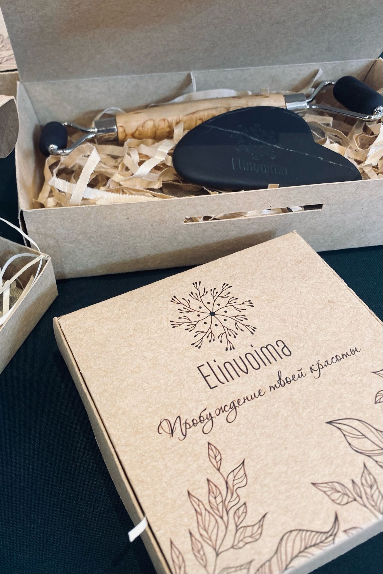 Производство запустили в декабре. Что-то изготавливают на заказ, что-то в мастерской делает супруг, затем все пакуется в крафтовые коробочки. После публикаций в соцсетях пошли первые заказы, сначала в основном от знакомых. Потом заработало сарафанное радио – подруги покупали массажеры в подарок. Один увезли в Сочи, другой – за границу. Вскоре на гуаша обратили внимание в клинике «Кивач». Представители крупнейшей карельской здравницы связались с Лилией и, увидев массажеры «Elinvoima» вживую, решили взять их на реализацию. Сегодня помимо сувенирного магазина клиники «Кивач» товары молодого карельского бренда продаются в Кижах, на Валааме, в Рускеале.