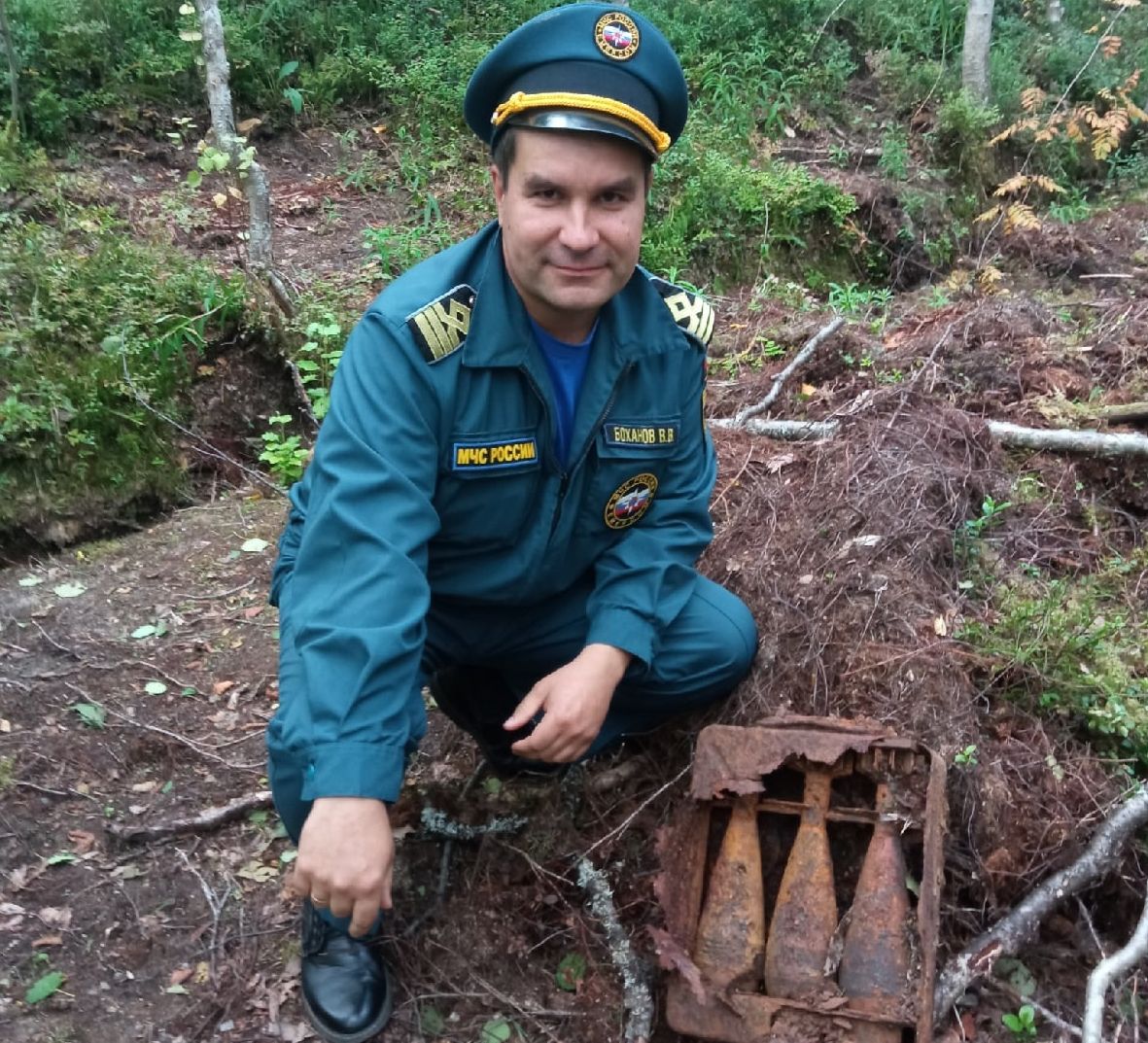 Ящик с тремя неразорвавшимися 80-ти миллиметровыми немецкими минометными снарядами времён Великой Отечественной войны нашли в Лоухском районе, сообщается в паблике районного ГИМС. Обнаружил его один из инспекторов Василий Брюханов.