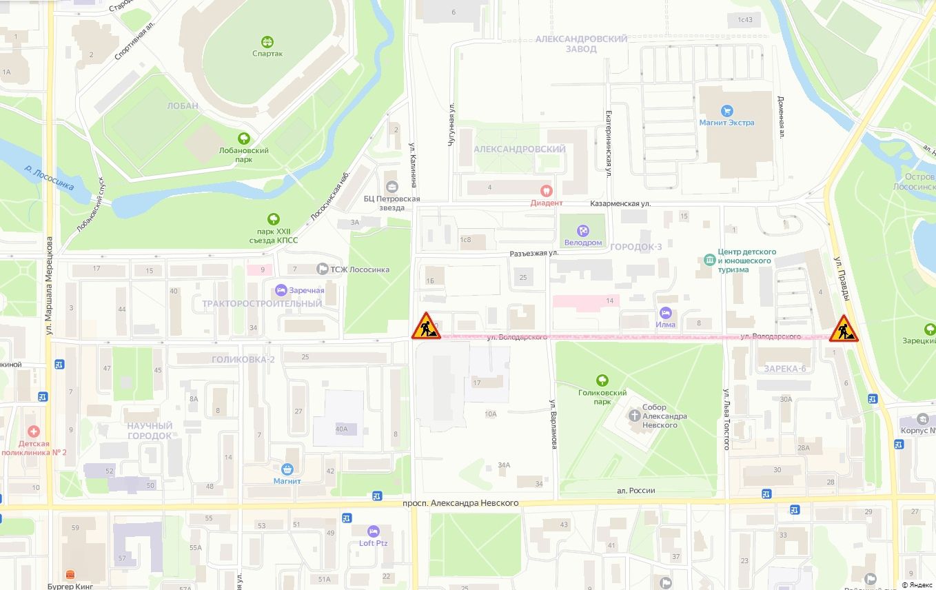 В эти дни проезд по улице Володарского будет ограничен. В пятницу, 12 августа, перекроют участок между улицами «Правды» и Калинина. В субботу, 13 августа, проезд будет закрыт между улицами Калинина и Маршала Мерецкова.