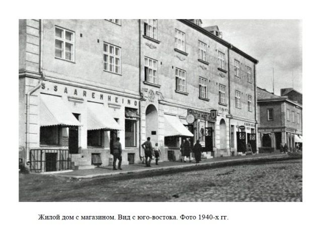 «Дом жилой с магазином» был построен почти 100 лет назад. В 1926 году выборгский архитектор Вяйно Кейнянен спроектировал жилое здание с торговыми помещениями для компании Osakeyhtiö Uusi Jukola на углу улиц Турункату (современная ул.Комсомольская) и Ойкокату (ул.Суворова), рассказывает сайт Республиканского центра по государственной охране объектов культурного наследия.