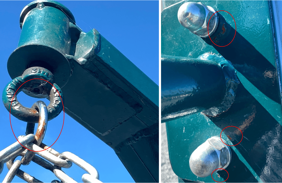 Соединительные элементы стойки с боксерским мешком, стойки с боксерской грушей не соответствуют требованиям, болтовые соединения стойки с боксерским мешком не закреплены должным образом, что приводит к нарушению устойчивости всей конструкции.
