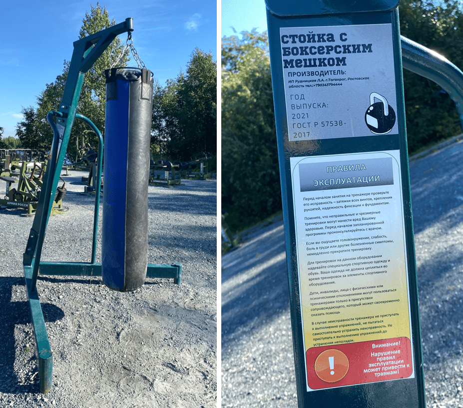 То же самое касается и тренажеров «Стойки с боксерским мешком и «Стойки с боксерской грушей». Экспертами обнаружена коррозия металла, внешние швы груши и мешка не проклеены. Дефекты также признаны значительными и неустранимыми.