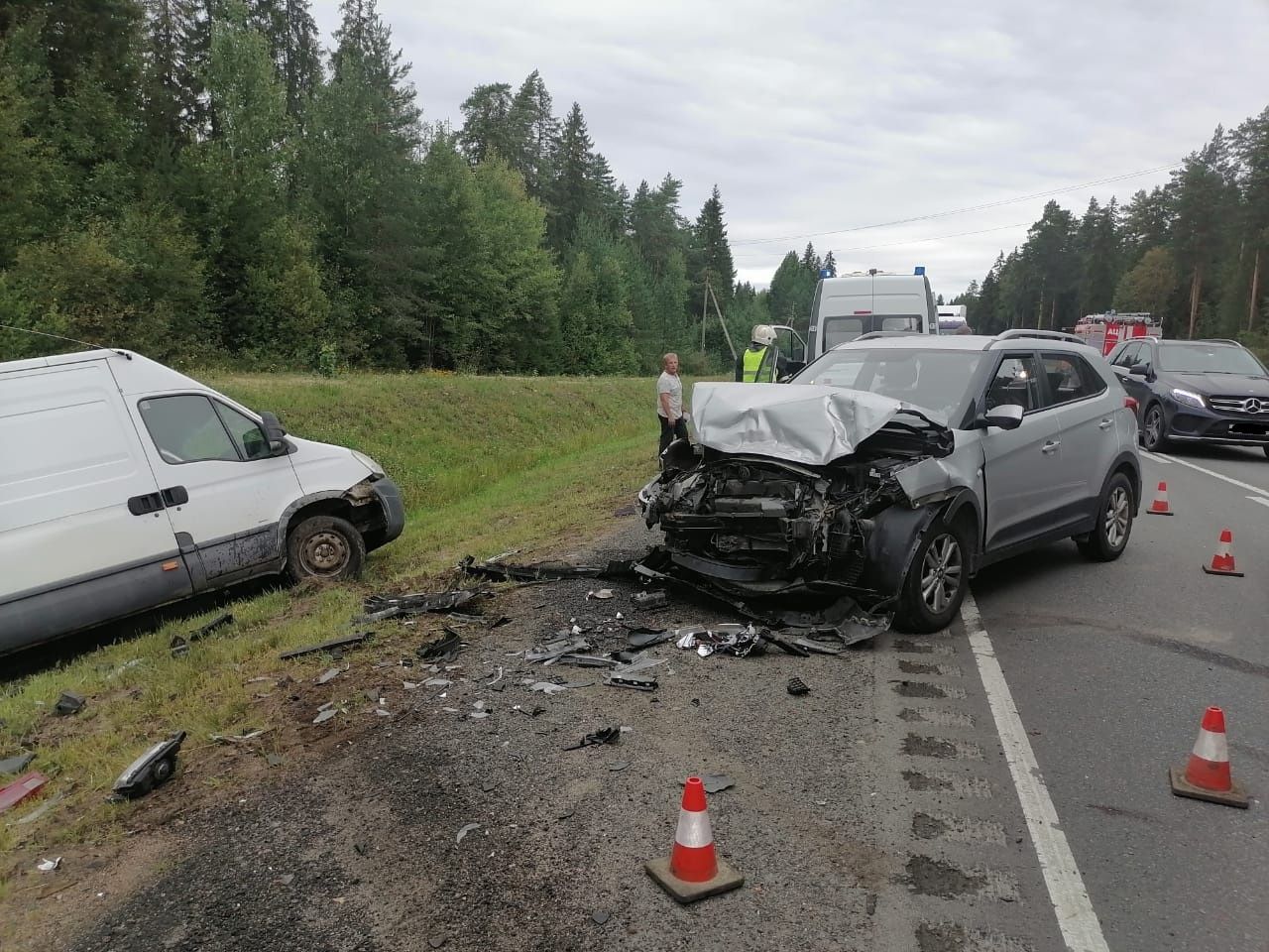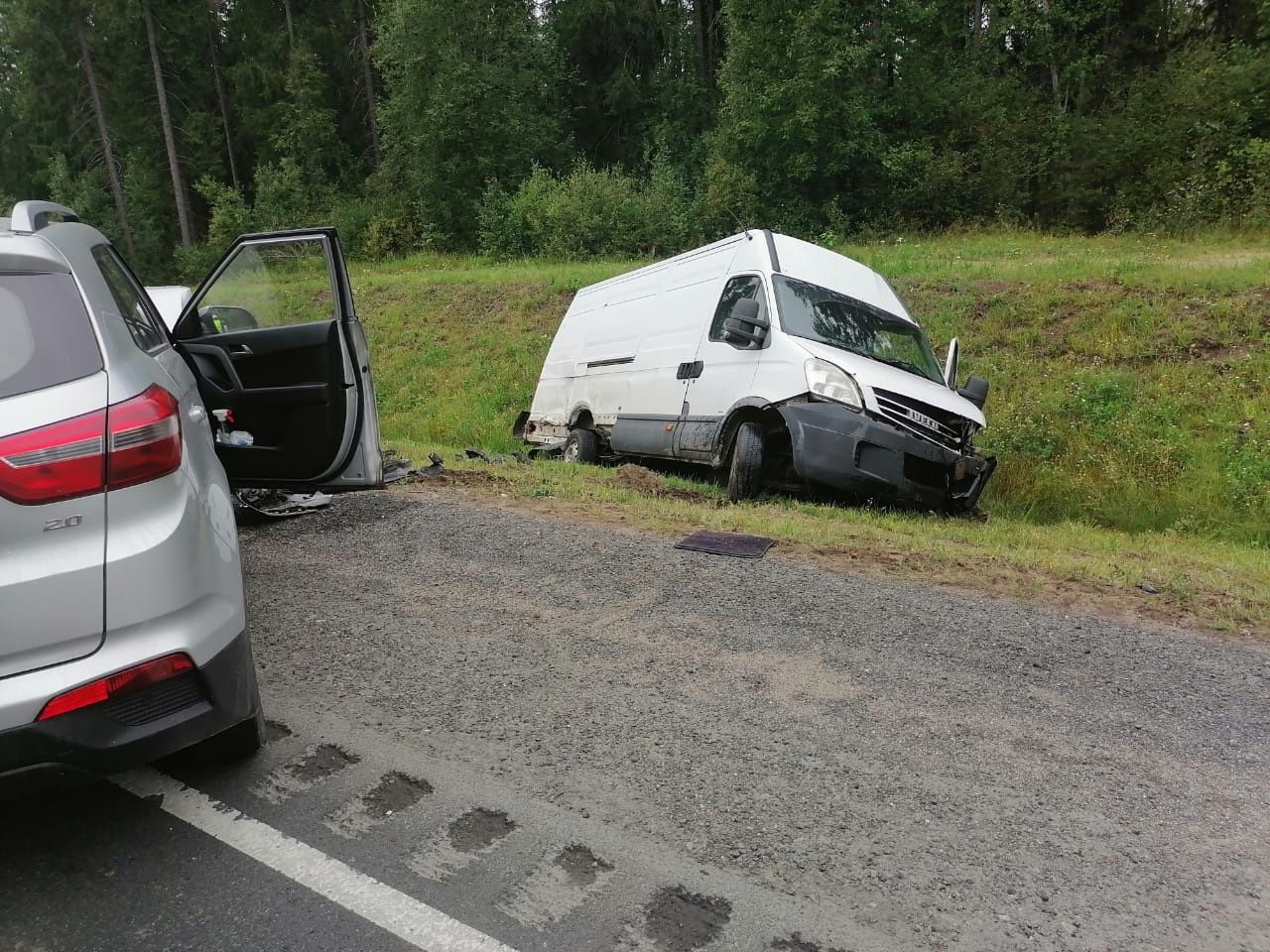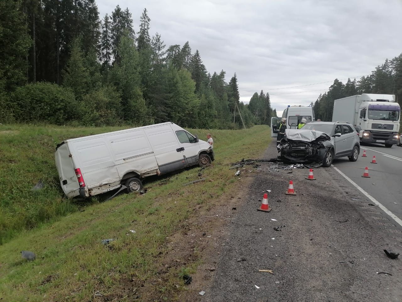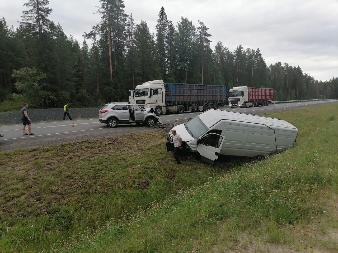 Машины получили серьезные механические повреждения, фургон съехал с дороги в кювет. О пострадавших не сообщается. Спасатели отключили аккумуляторы и обеспечили бесперебойное движение по трассе.