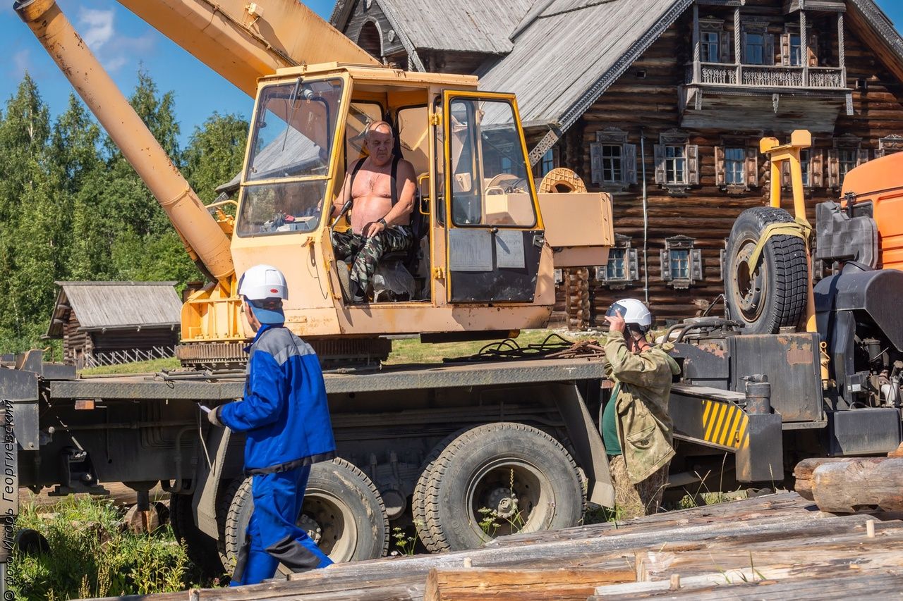Мы дошли до 18 венца – до перекрытий. К сезону дождей хозчасть тоже будет под временной крышей. Затем приступим к внутренним работам», — рассказал руководитель Плотницкого центра музея Михаил Теребов.