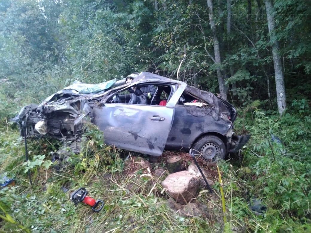 По информации спасателей, машина съехала с дороги в кювет, врезалась в дерево и опрокинулась. На место ДТП выезжали пожарные из села села Ведлозеро. Они осмотрели место аварии и высвободили пострадавших.