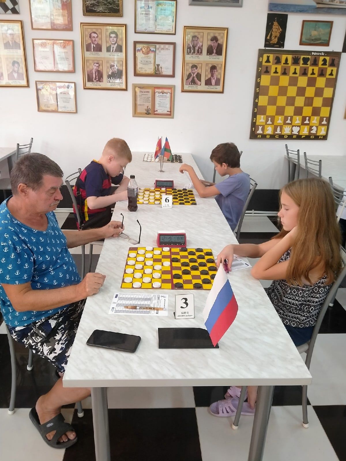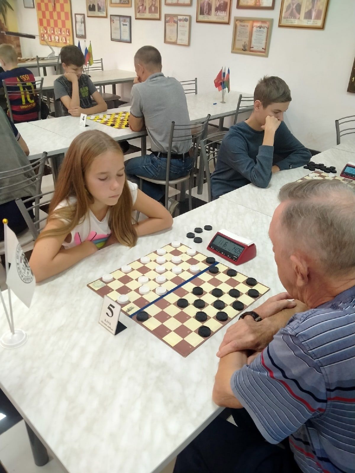 В турнире по русским шашкам с классическим контролем времени девочки заняли весь пьедестал почета. Первой стала Мария Мельникова, второй – Евдокия и третьей – Эмилия. В молниеносной программе Мария и Евдокия взяли серебро и бронзу.