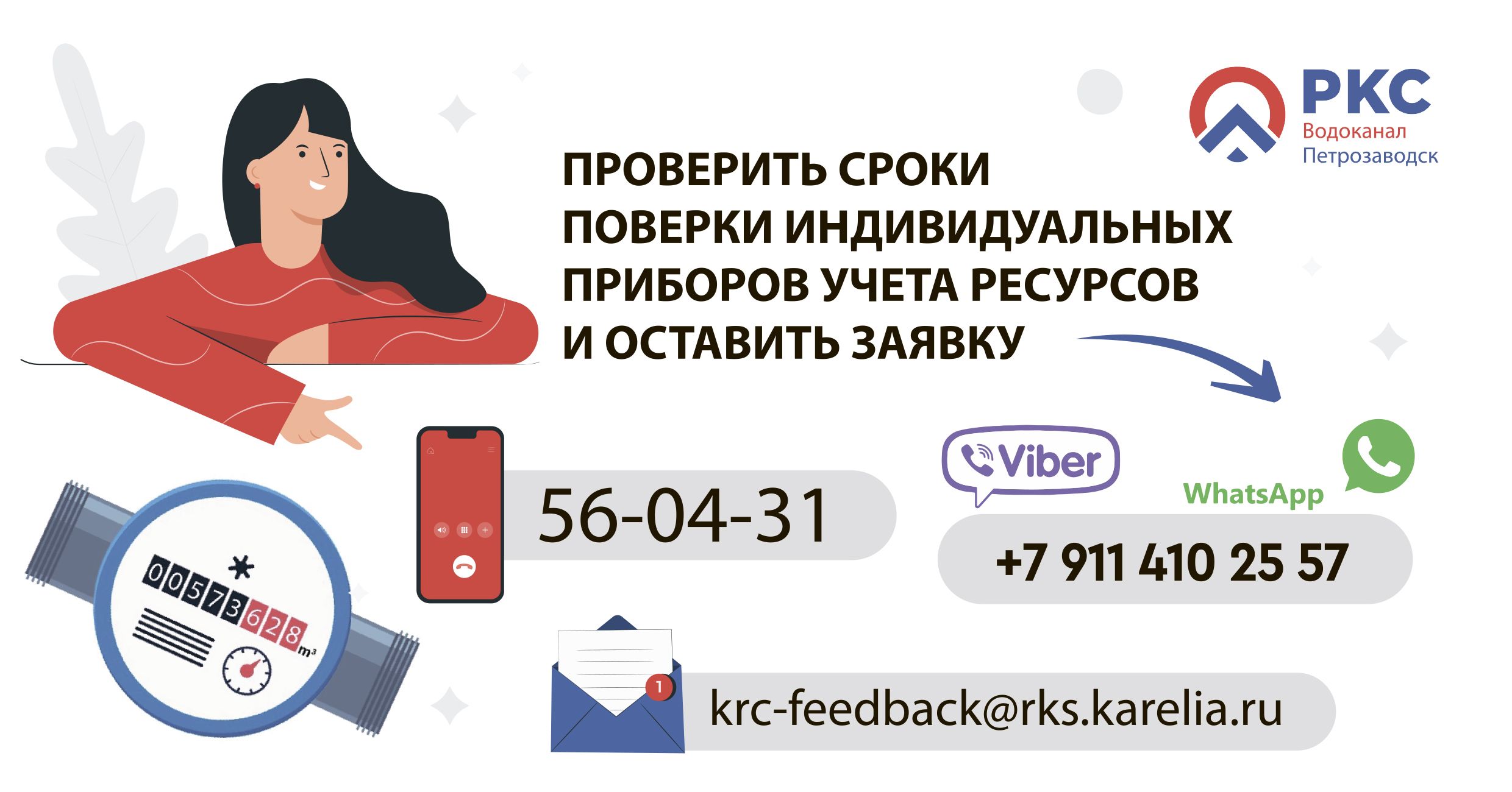 Оставить заявку на поверку счетчика можно по телефону 56-04-31, по электронной почте, с помощью мессенджеров Viber и WhatsApp по телефону 8 (911) 410-25-57 или на сайте компании.