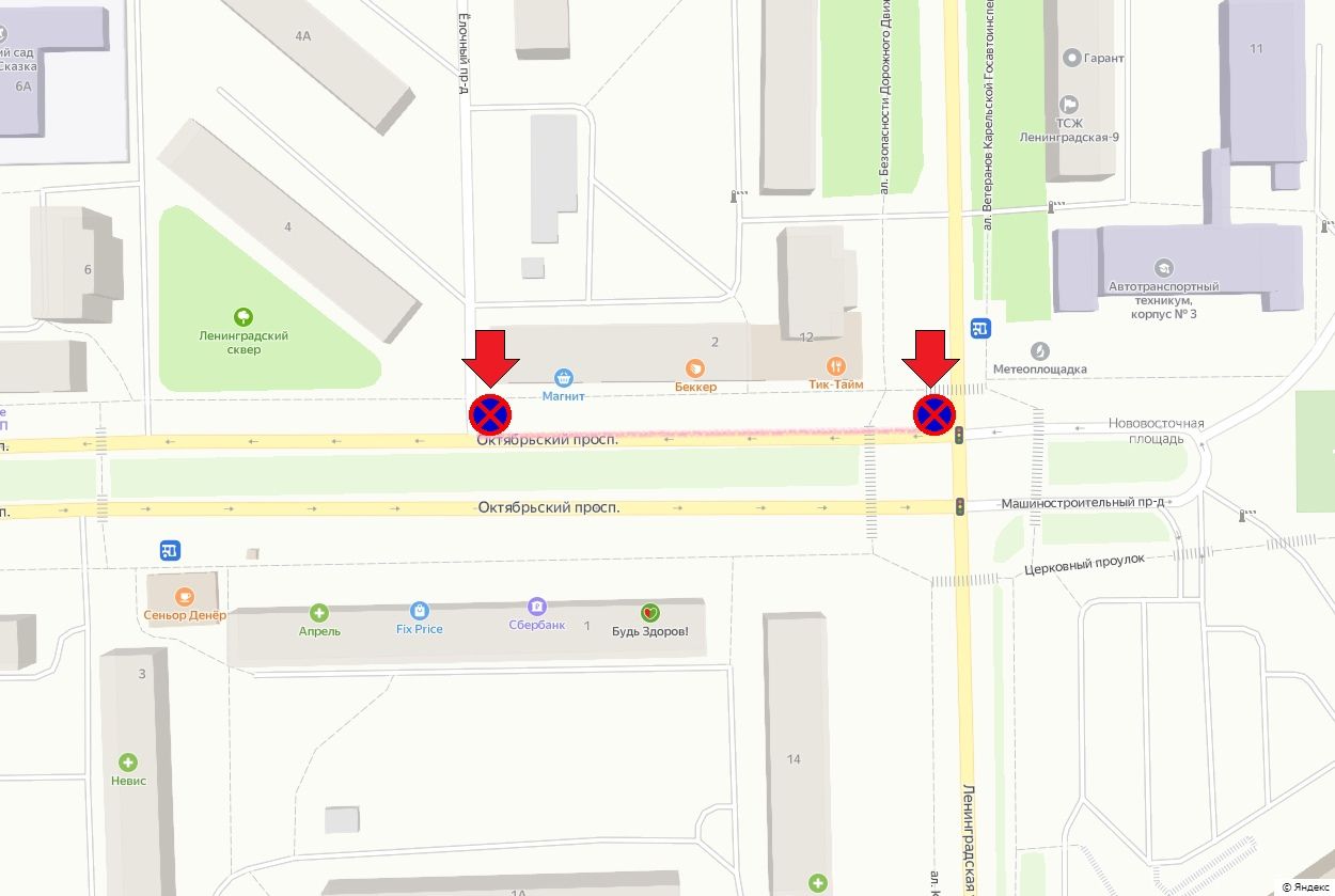 На Октябрьском проспекте между Ленинградской улицей и Ёлочным проездом по чётной стороне вдоль дома № 2 начнёт действовать запрет остановки.